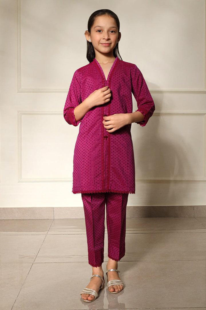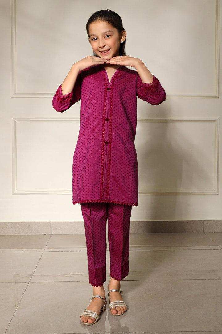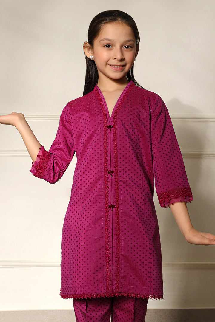 Dress your little one in style with Saya’s Stitched Self Jacquard Shirt & Trouser Set for Kids. Crafted from premium self-jacquard fabric, this ready-to-wear 2-piece ensemble combines a refined texture with lasting comfort—ideal for festive gatherings and special occasions.