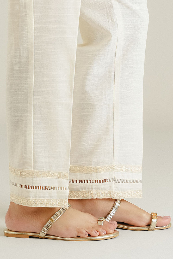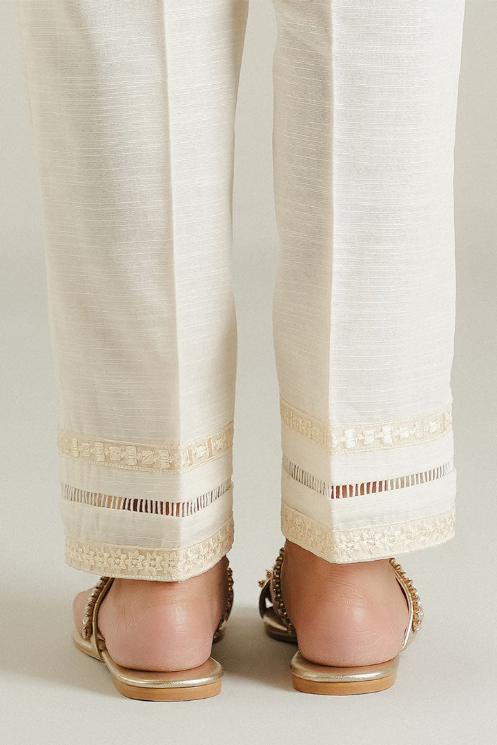 KHADDAR DYED AND EMBROIDERED STRAIGHT FITTED PANTS