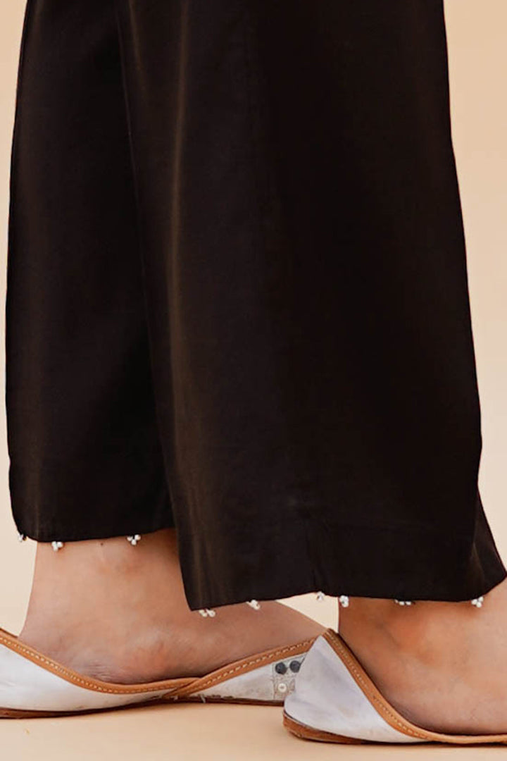 RAW SILK PEARL DETAIL STRAIGHT PANTS