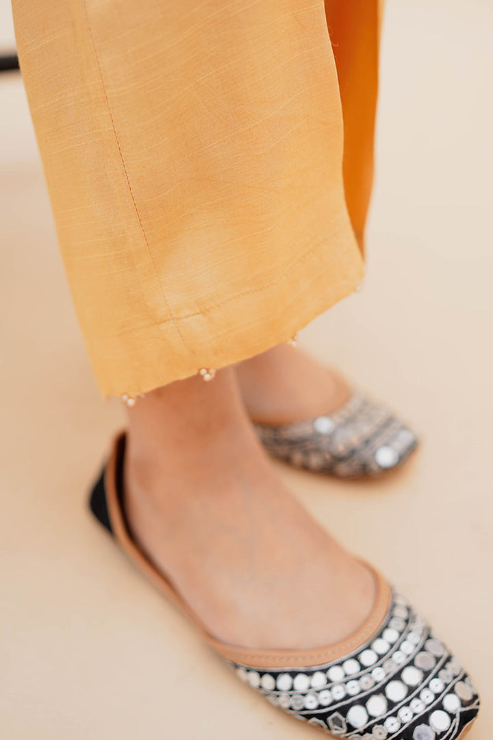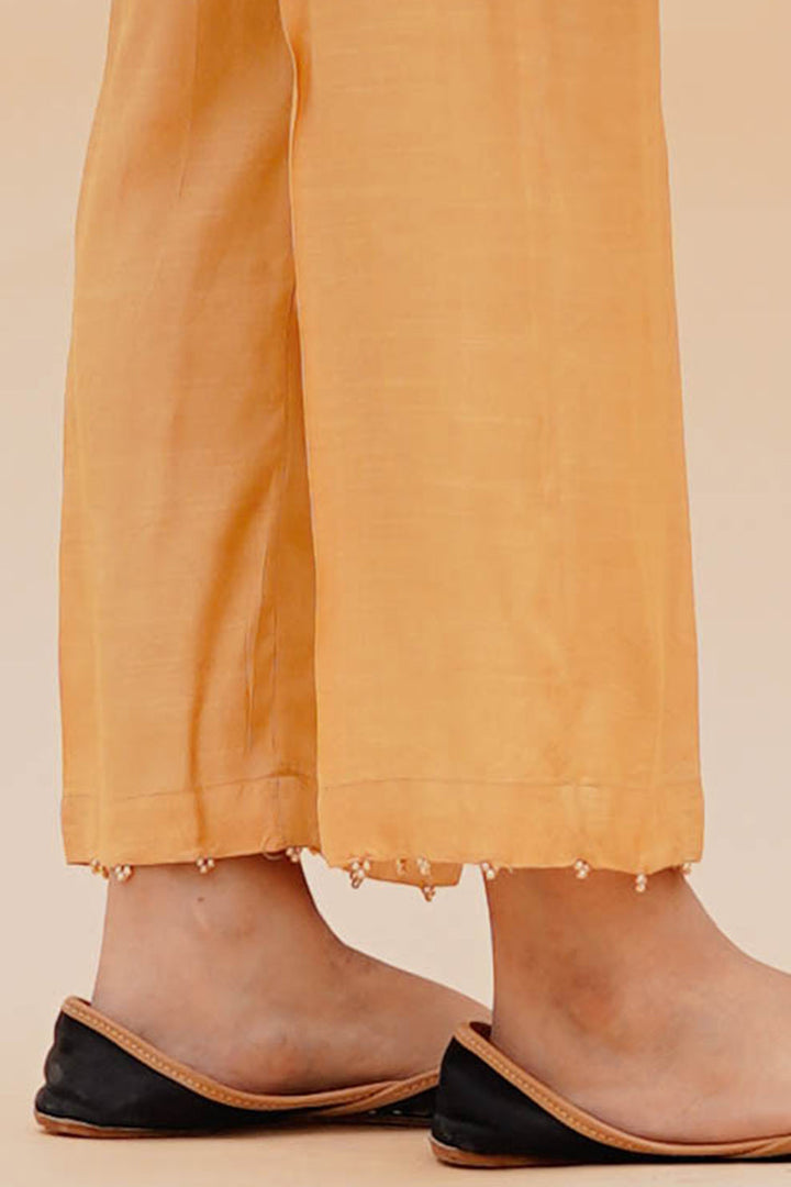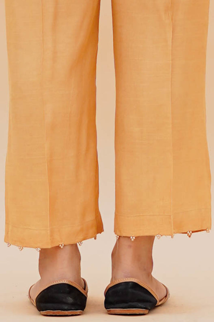 RAW SILK PEARL DETAIL STRAIGHT PANTS