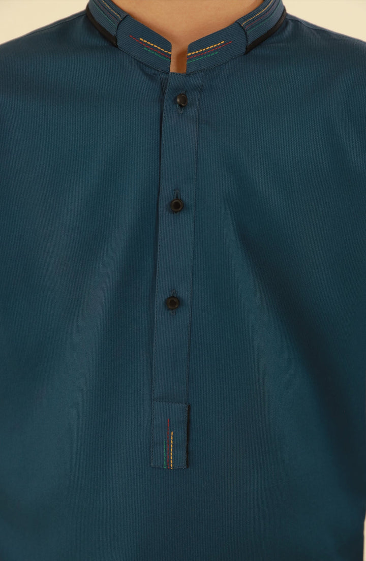 SUMMER'25 BOYS CASUAL KURTA PAJAMA TEAL BLUE