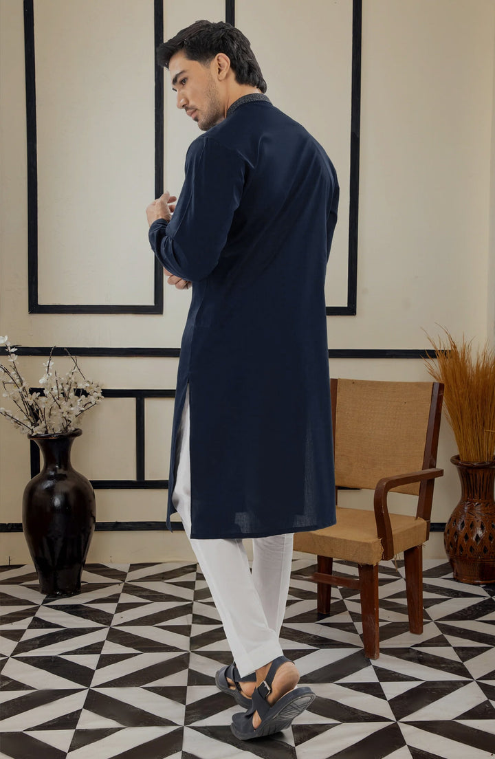 SUMMER'25 MEN KURTA EMBROIDERED NAVY