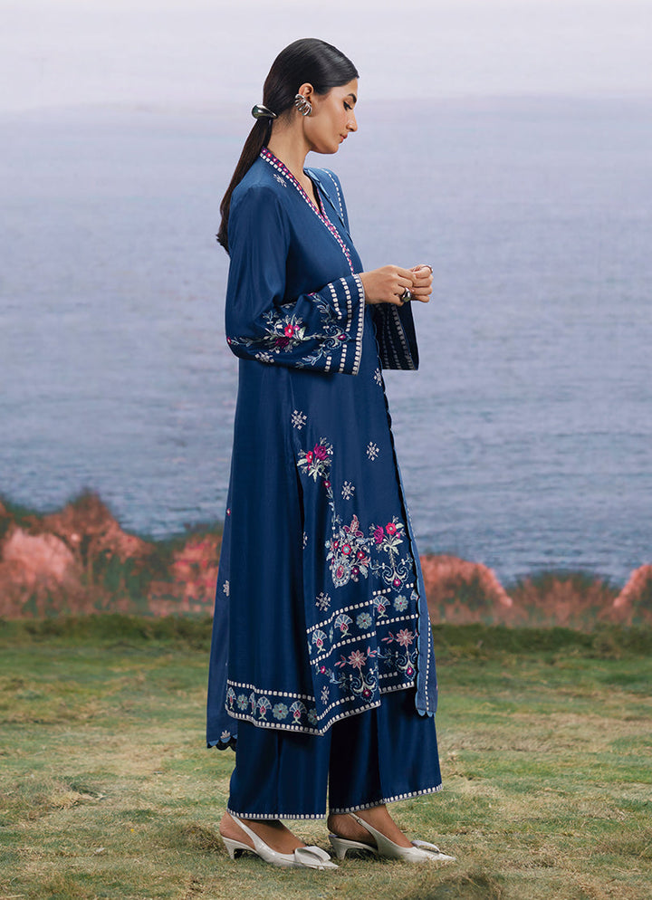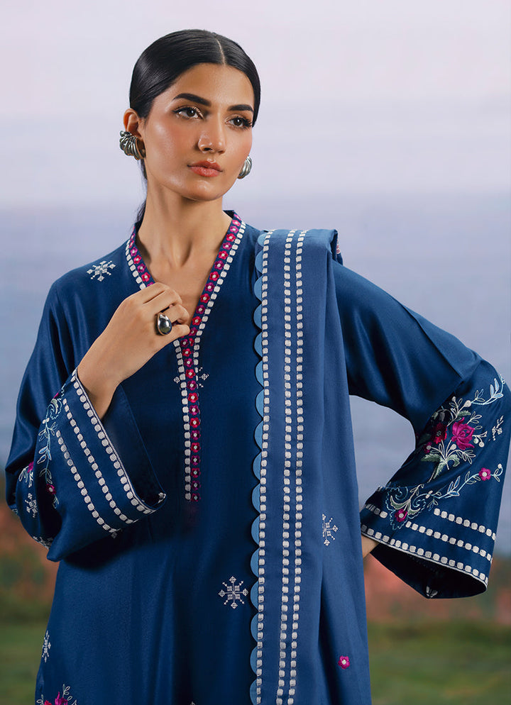 Talia in Navy Blue/Ink Blue from our Winterkari '25 Collection. An embroidered twill viscose 3pc unstitched outfit.