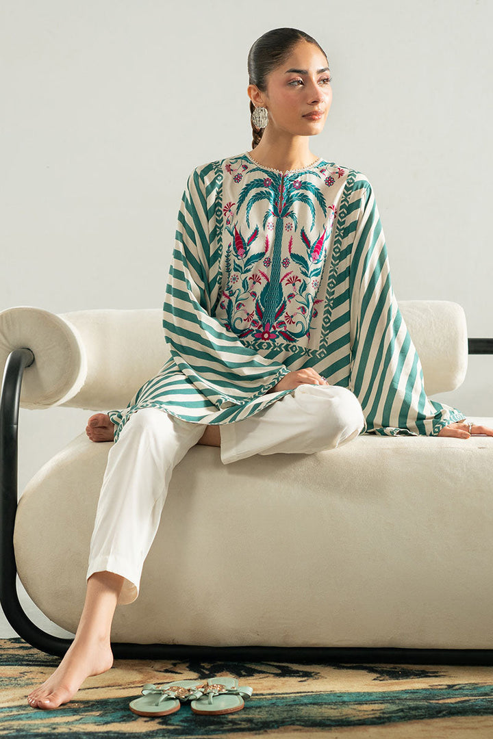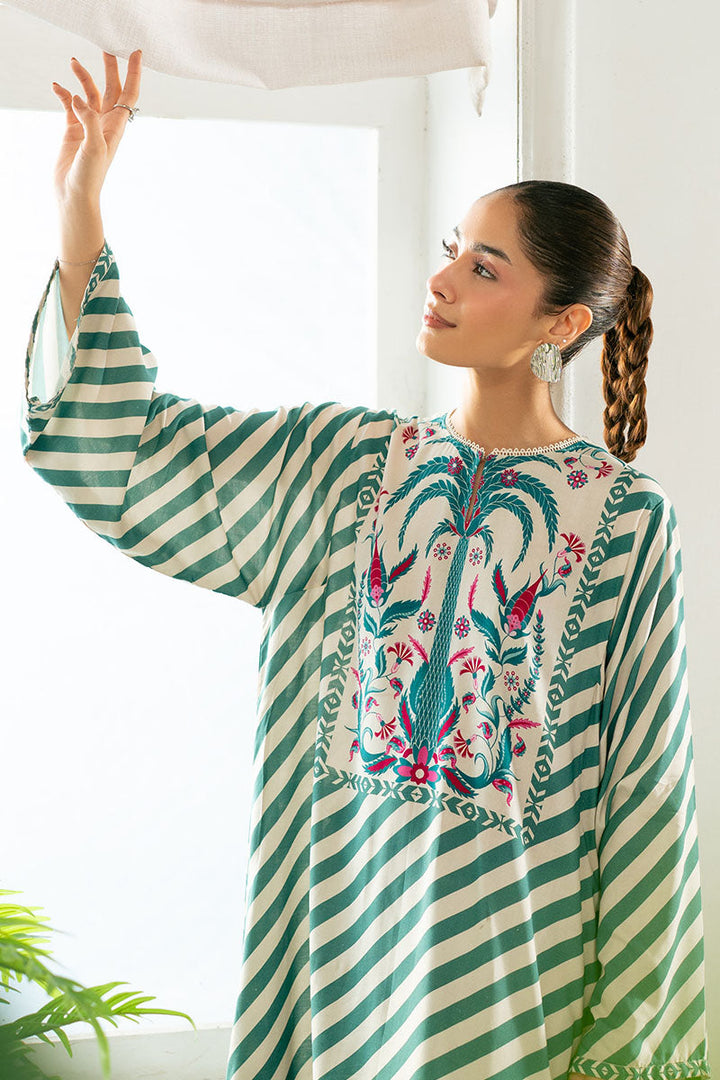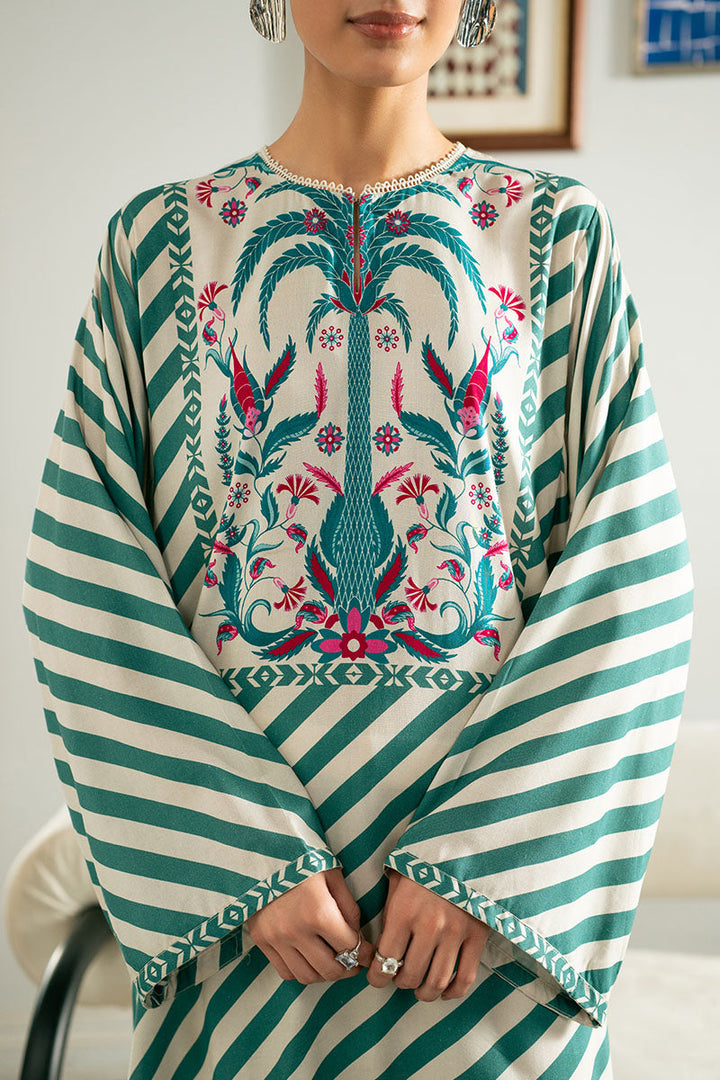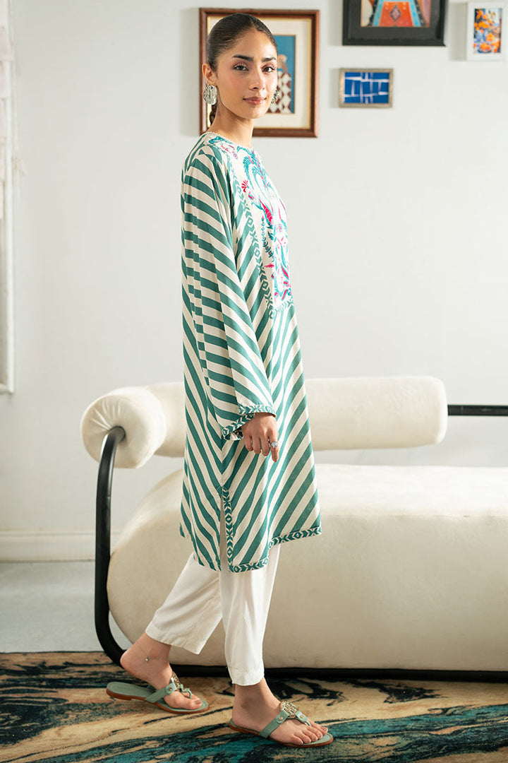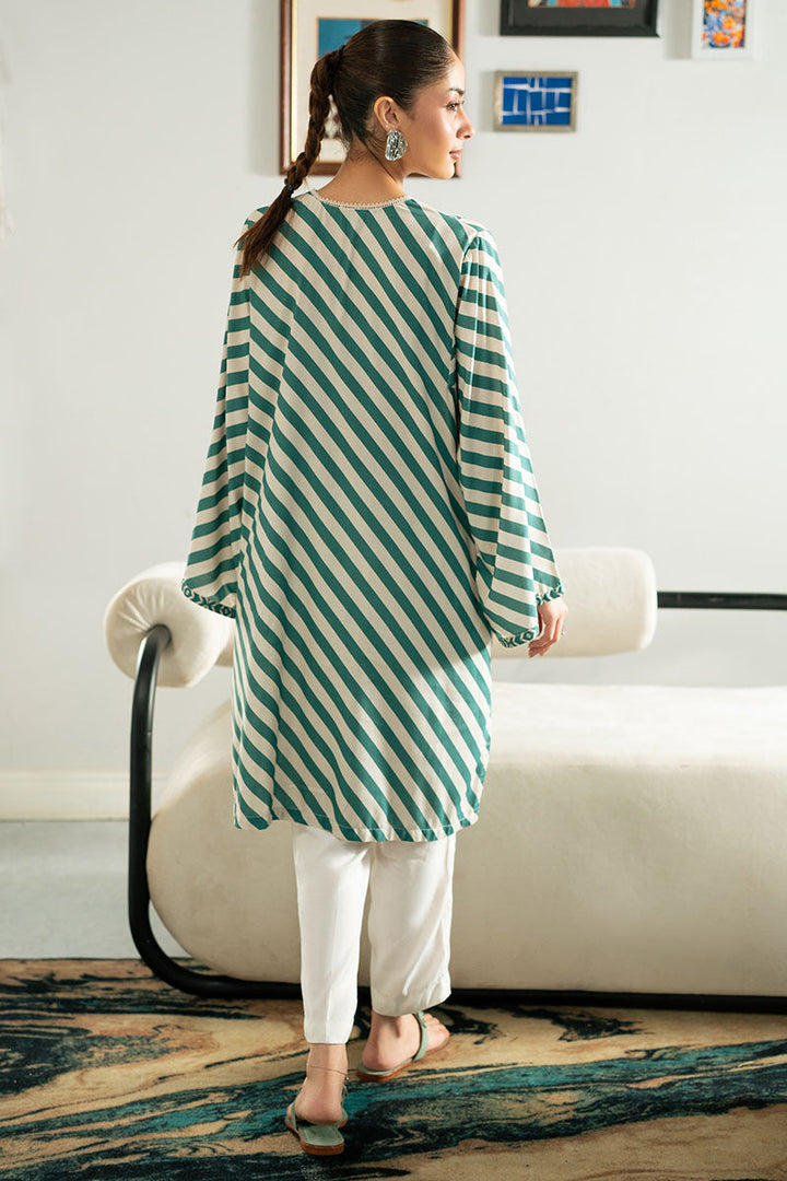TEAL STRIPE LINEN PRINTED SHIRT