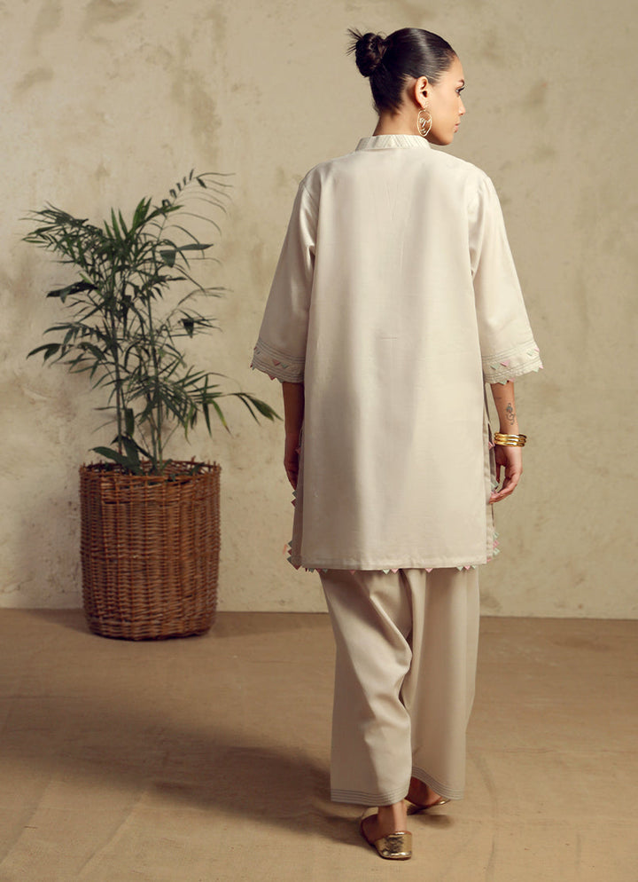 The Light Grey Textured Co-ord Set from our Spring Basics '25 Collection, A-line shirt, band collar, three quarter bell sleeves paired with a shalwar.