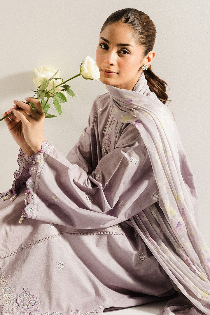 Elevate your summer style with THISTLE BLOOM-2PC (SHIRT & DUPATTA). The loose fit paneled shirt features front dyed embroidery with lace details, while the back is dyed for a cohesive look. The crew neck with lace adds a touch of elegance, and the box sleeves are adorned with embroidery. The chiffon printed dupatta completes this stylish ensemble.