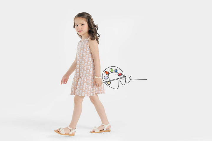 A fascinating design is layered over this elegant dress rendered in a gleaming shade. Crafted in a chic sleeveless silhouette with gathers at bottom and adorned with floral designs printed in mesmerizing hues, this contemporary dress is a perfect option to style at fun gatherings this season.