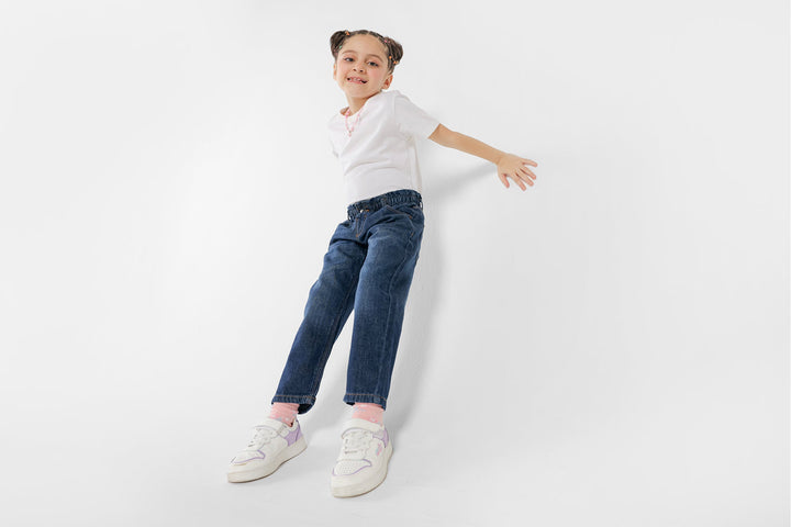 Let your girls look trendy in this contemporary jeans rendered in a deep blue shade. Crafted in a fascinating silhouette, this statement jeans is a great addition to your girl's wardrobe to pair with variety of outfits.