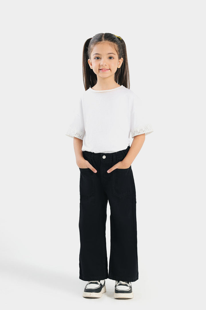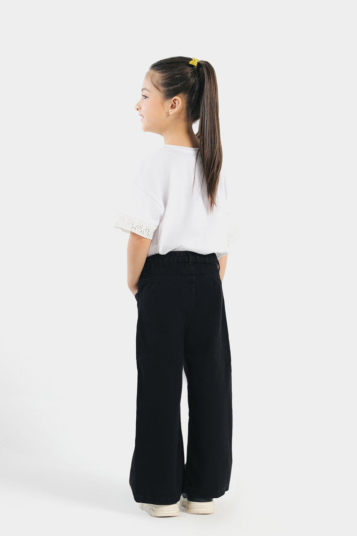 A fascinating design is portrayed on this trendy jeans rendered in a classy black shade. Beautifully crafted in a contemporary flared silhouette with pockets, this elegant jeans is a great option for everyday occasions.