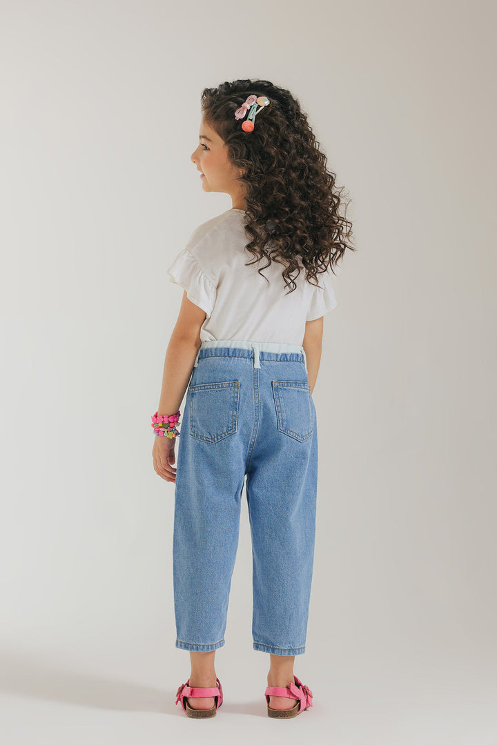 A classy design is layered over this trendy jeans rendered in a denim blue shade. Crafted in a classy straight fit silhouette and adorned with two toned waist with button closure, style this exquisite statement jeans at casual gatherings this season.