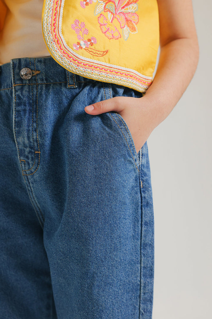 Upgrade your wardrobe with this stylish jeans. Crafted in a trendy lavender blue shade, this mom fit silhouette features a unique layered design and functional pockets. Perfect for casual gatherings, this statement piece offers both fashion and functionality.
