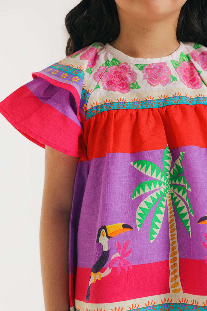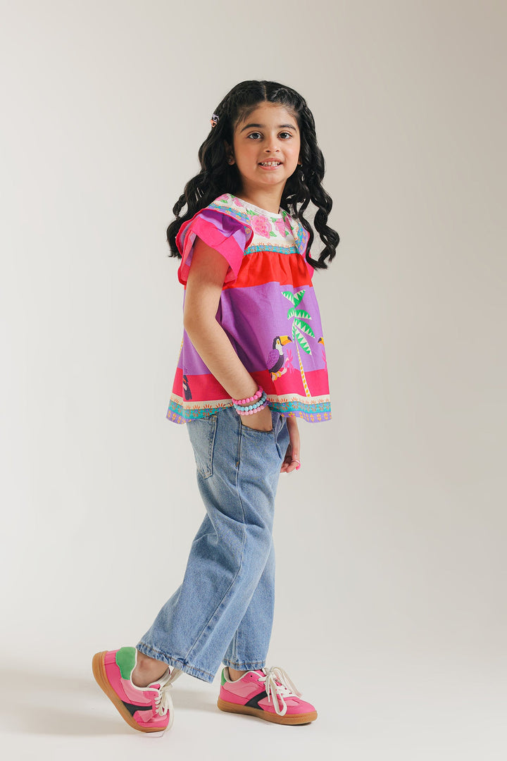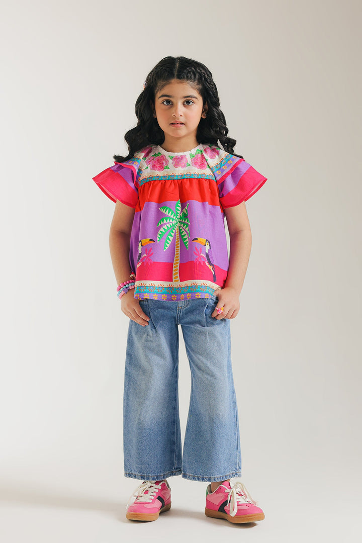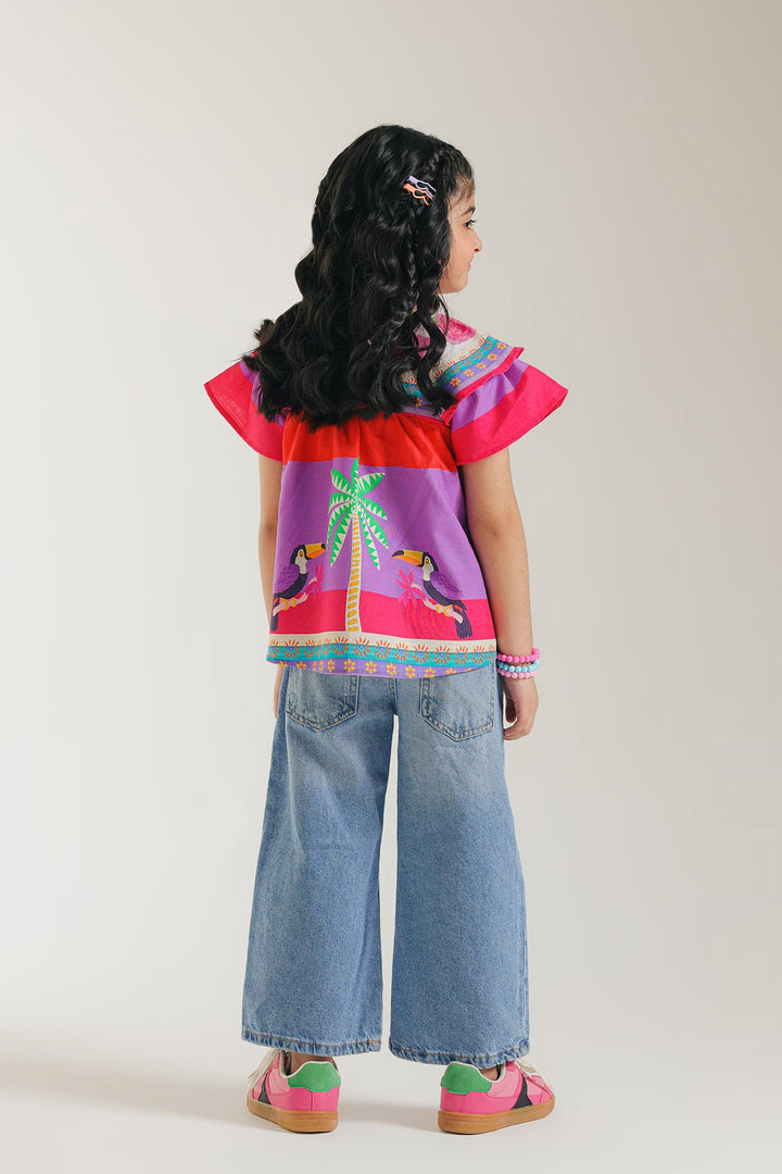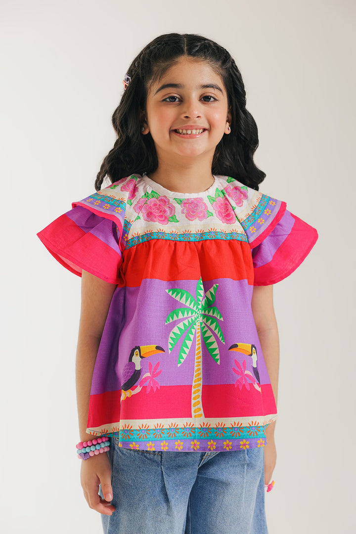 This versatile, high-quality shirt features a trendy peplum silhouette with expertly crafted frills at short sleeves. Adorned with captivating prints in vibrant colors, elevate your wardrobe with this elegant and comfortable top, perfect for any occasion.