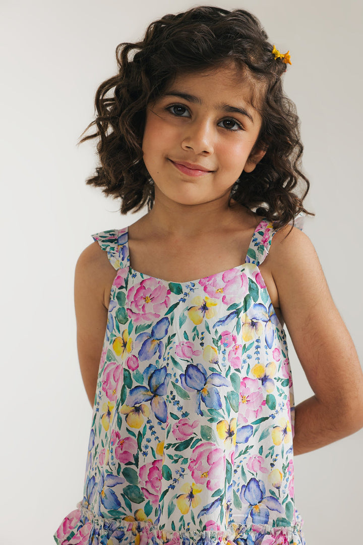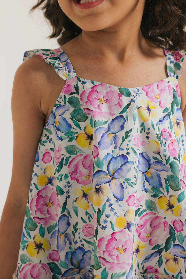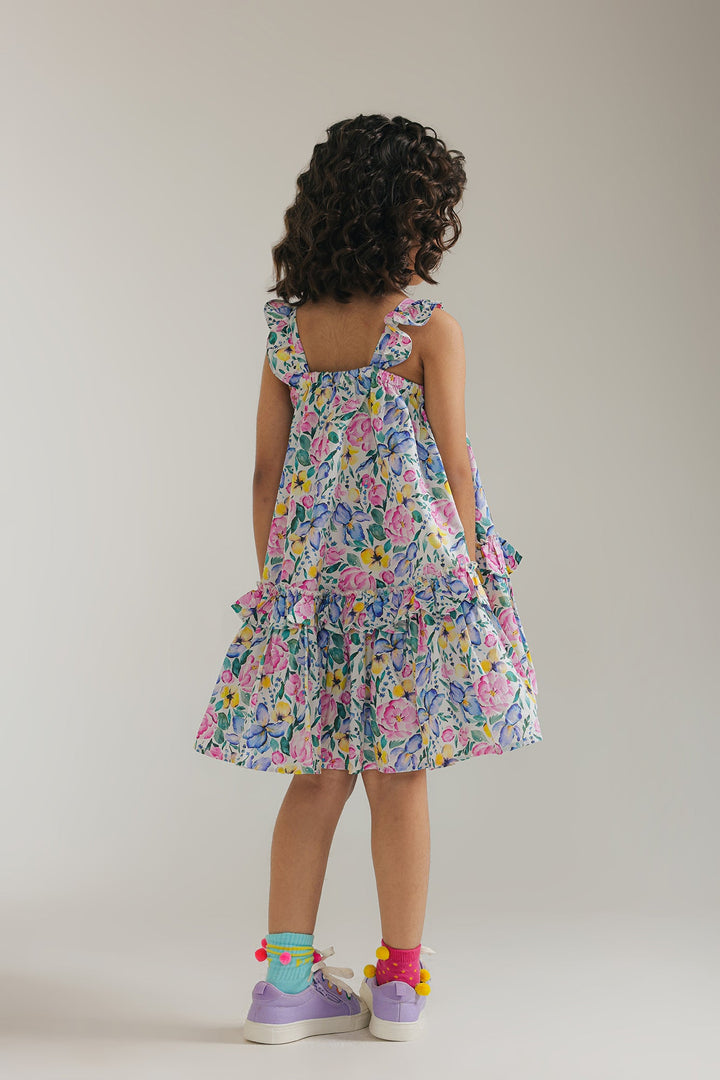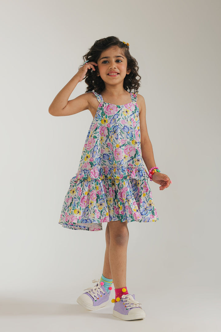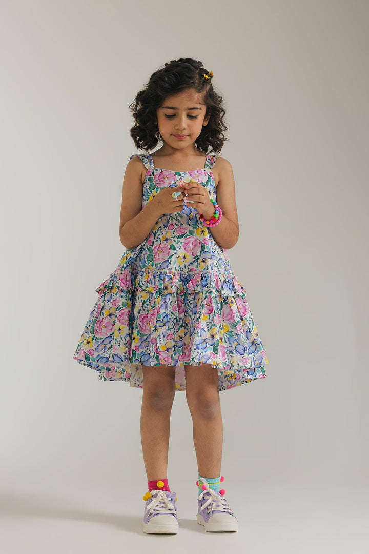 This dress will definitely be a hit with your girls - blending style and comfort for all occasions! Its square neckline and straps, adorned with beautiful floral illustrations printed in blooming colors bring a playful spin to the elegant design. Made from top-notch materials, it's a must-have for your summer wardrobe!
