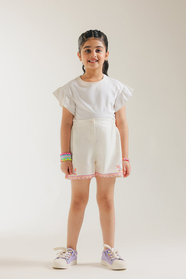 These charming white shorts for kids are a delightful addition to any wardrobe. The clean white canvas is beautifully accented by delicate floral embroidery along the hem, adding a touch of playful elegance. The relaxed fit and comfortable design make them perfect for both everyday adventures and special occasions. Pair them with a simple tee or a top for a versatile and stylish look.