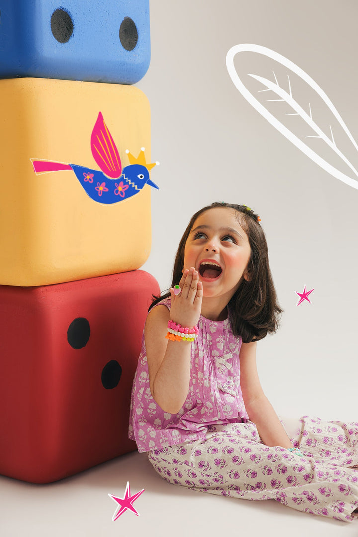 Dress your little one in delightful charm with this enchanting two-piece outfit, designed for comfort and endless smiles! This adorable set features a lilac top adorned with a whimsical white floral print, creating a fresh and playful look. The sleeveless design, coupled with delicate pleating down the front and charming little bows, ensures breathability and cuteness for all their adventures. Completing the ensemble are the wonderfully comfortable matching pants, featuring the same sweet floral print on a soft, lighter background. With an easy drawstring waist, these pants are perfect for active play, ensuring freedom of movement and a snug fit.