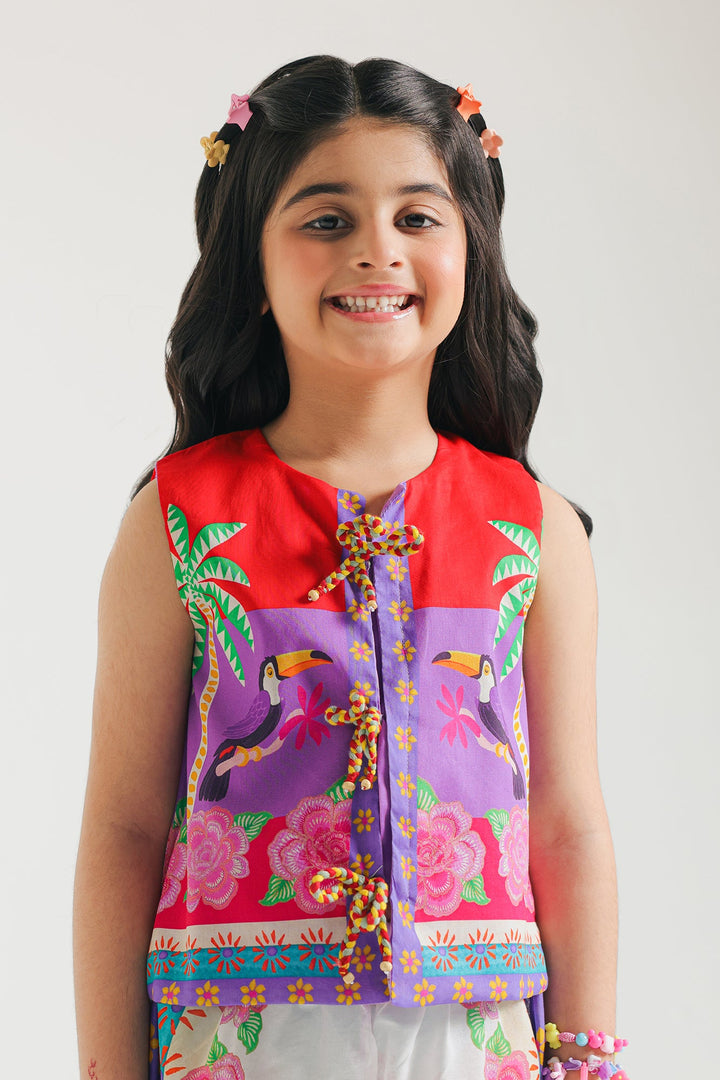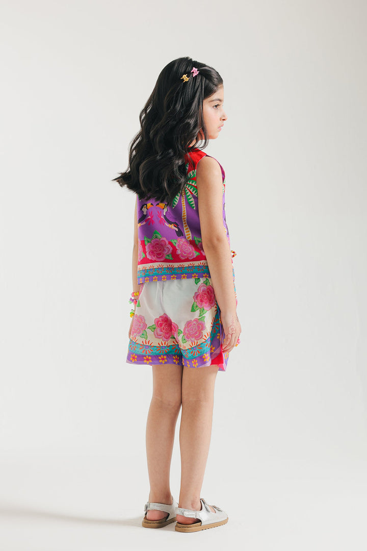 This trendy co-ord set features an attractive mauve canvas beautifully adorned with mesmerizing artistic prints in bright colors. It features a contemporary sleeveless top paired with matching shorts. Perfect for adding a pop of color to any wardrobe. Made with comfortable materials for all-day wear.
