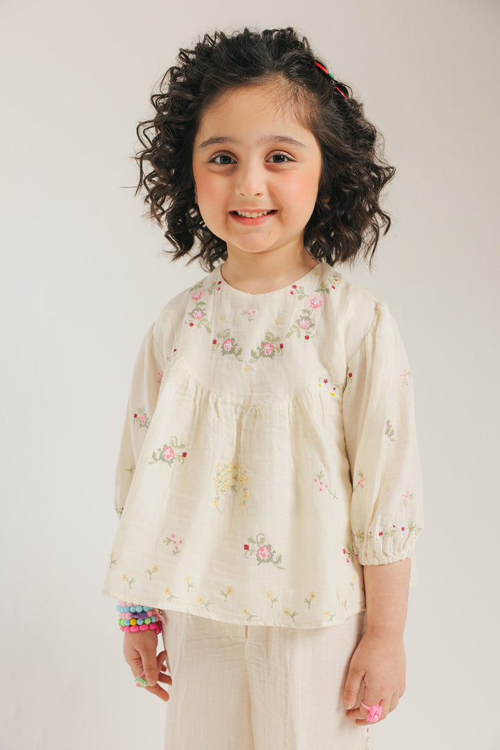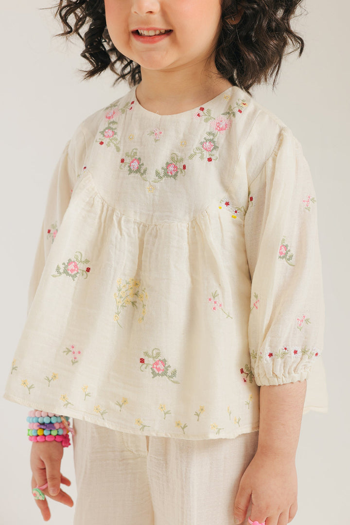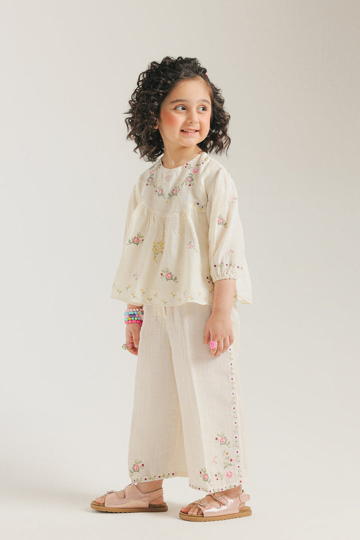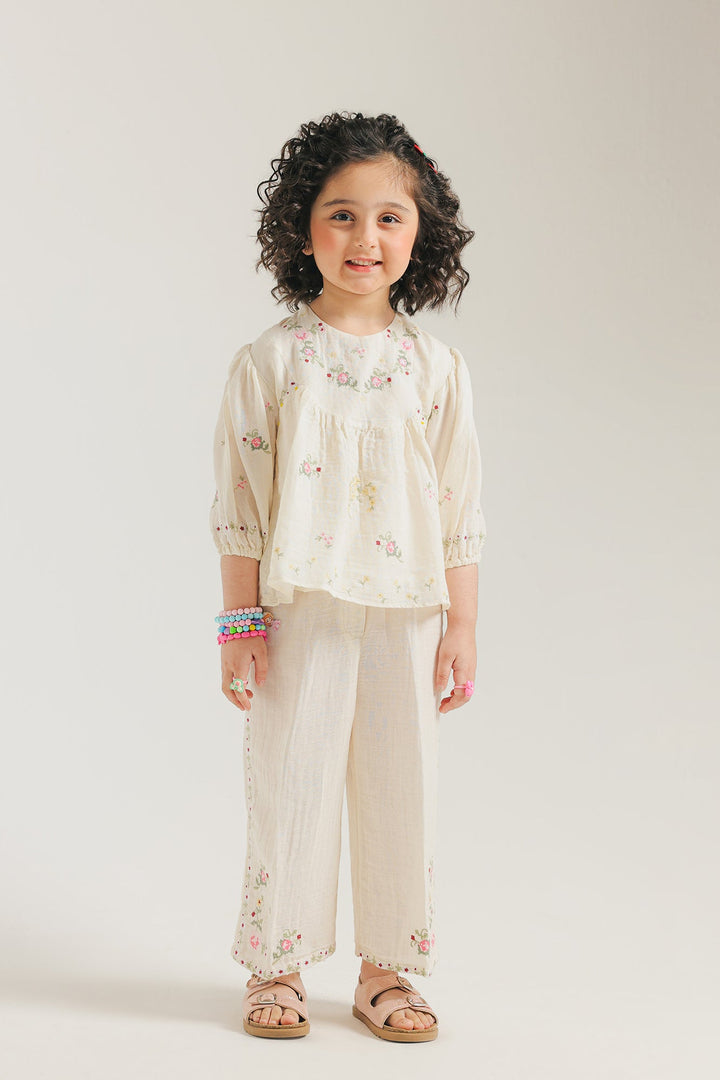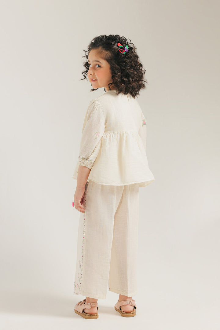 Elevate her style with this elegant white embroidered co-ord set! The charming two-piece ensemble features a delicate top with intricate floral embroidery along the neckline and sleeves. The matching pants are beautifully accented with a floral motif down the sides, tying the look together. Made from a soft, lightweight fabric, this set is both comfortable and chic, making it perfect for family gatherings or any occasion where she wants to look effortlessly graceful.