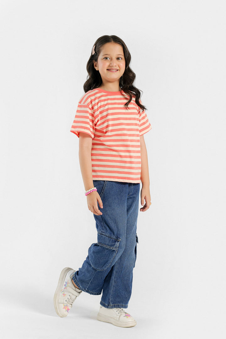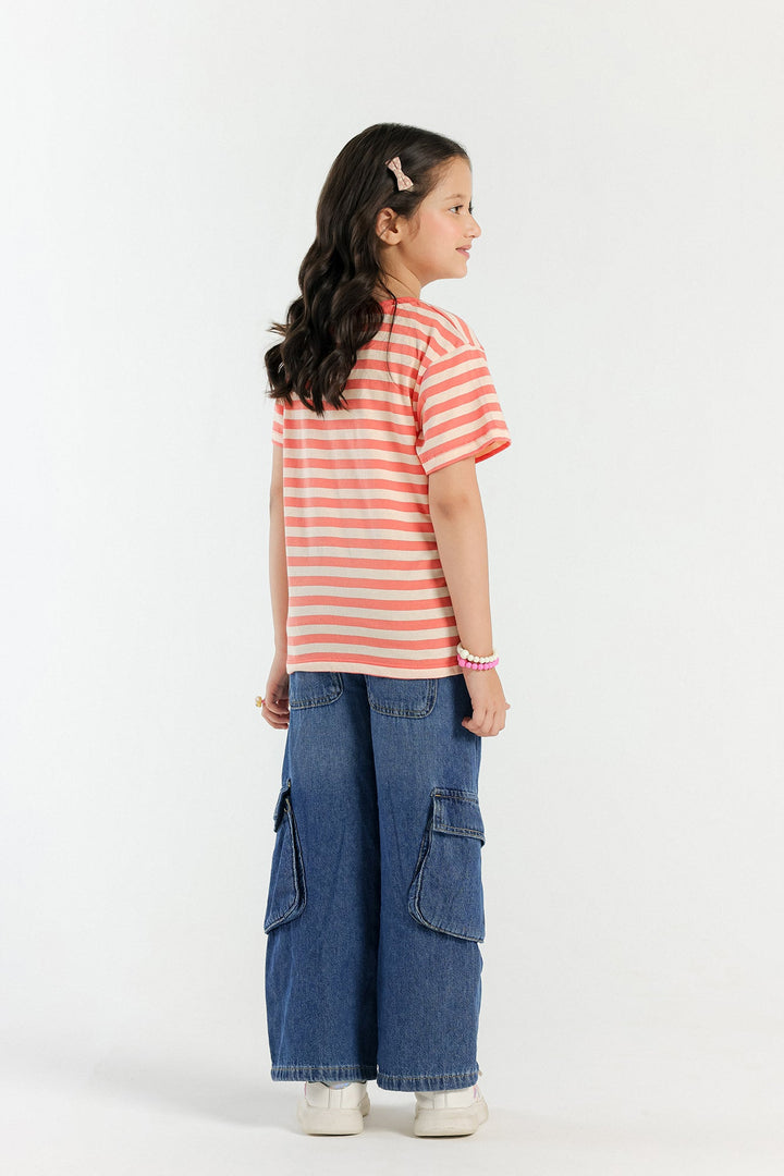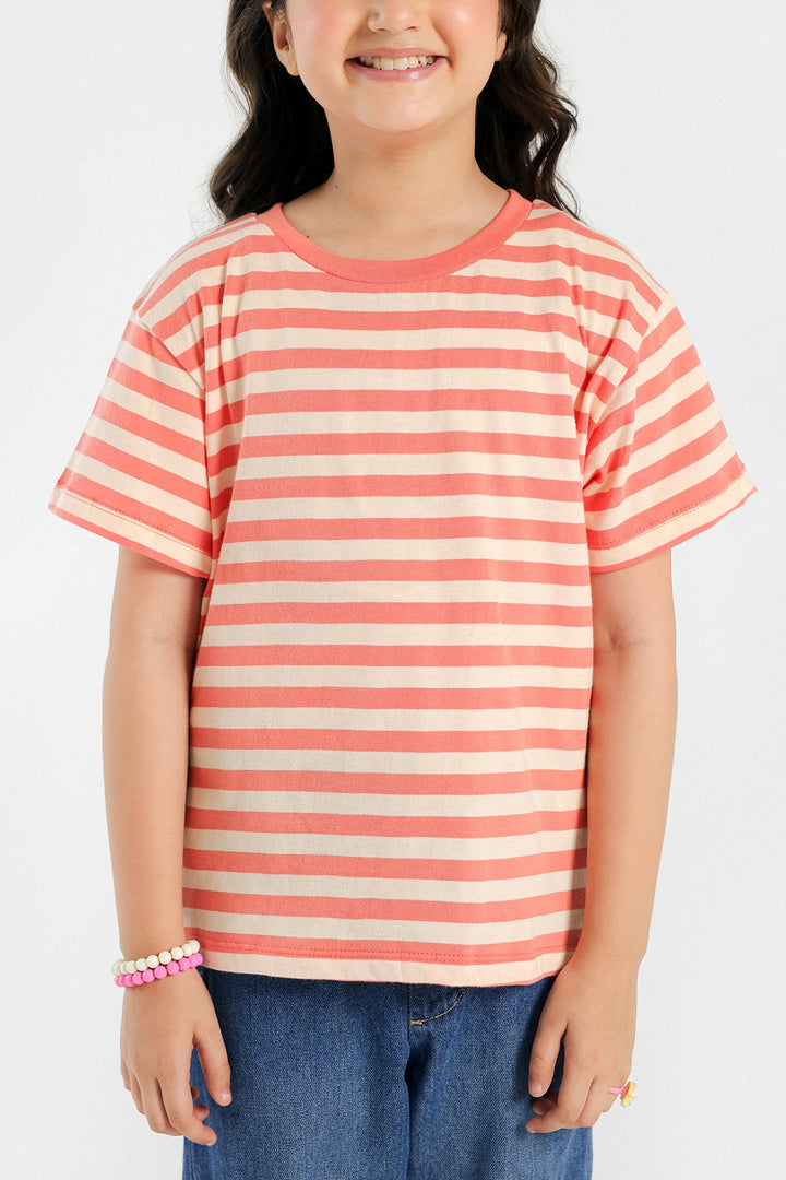 This stylish t-shirt features a classy white canvas enriched with captivating stripe prints. Its lightweight and breathable design provides comfort and style, making it a great addition to your girls' wardrobe.