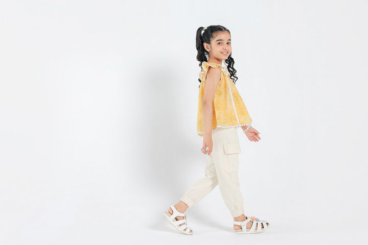 This gleaming yellow top is perfect for a fashionable look. Its peplum silhouette and cheerful floral prints in vibrant hues will make you stand out from the crowd. This contemporary top is a perfect option for you girls to style for fun gatherings.