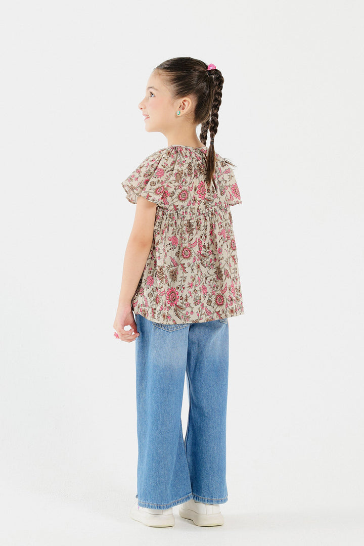 This elegant blue ice top is perfect for a fashionable look. Its peplum silhouette and cheerful yellow beige prints in vibrant hues will make you stand out from the crowd. create a trendy statement with this contemporary top.