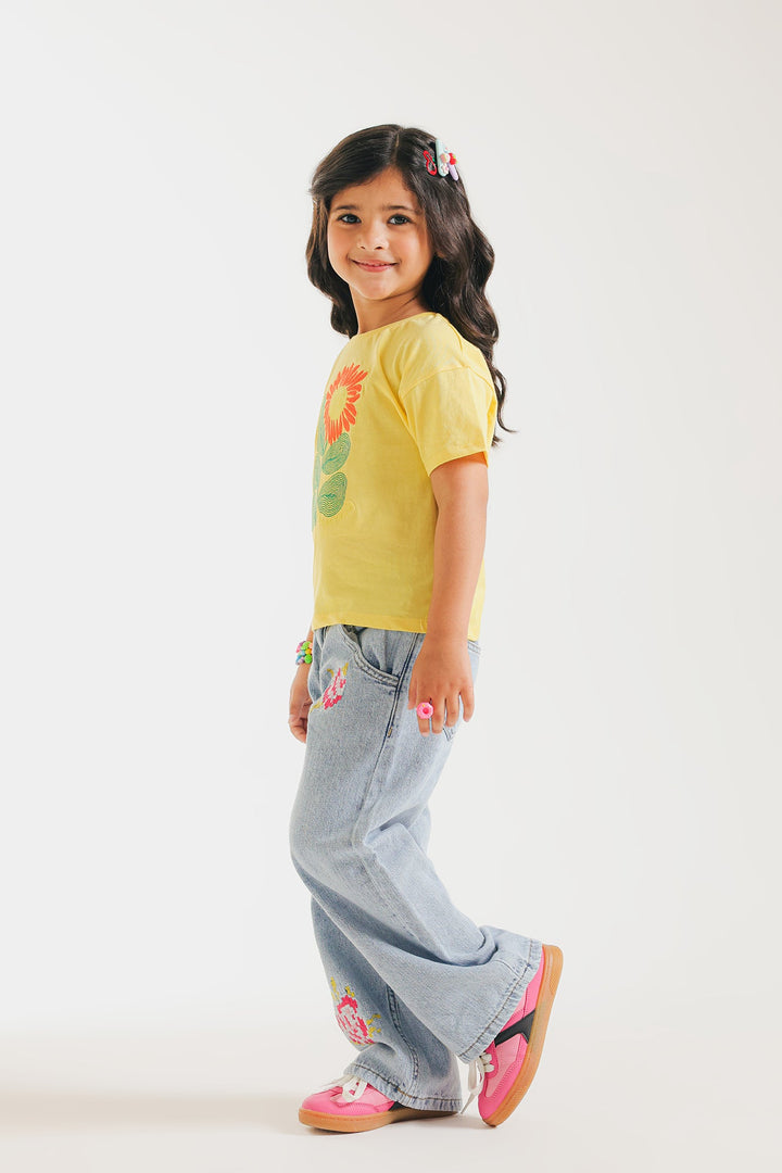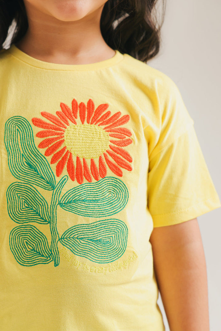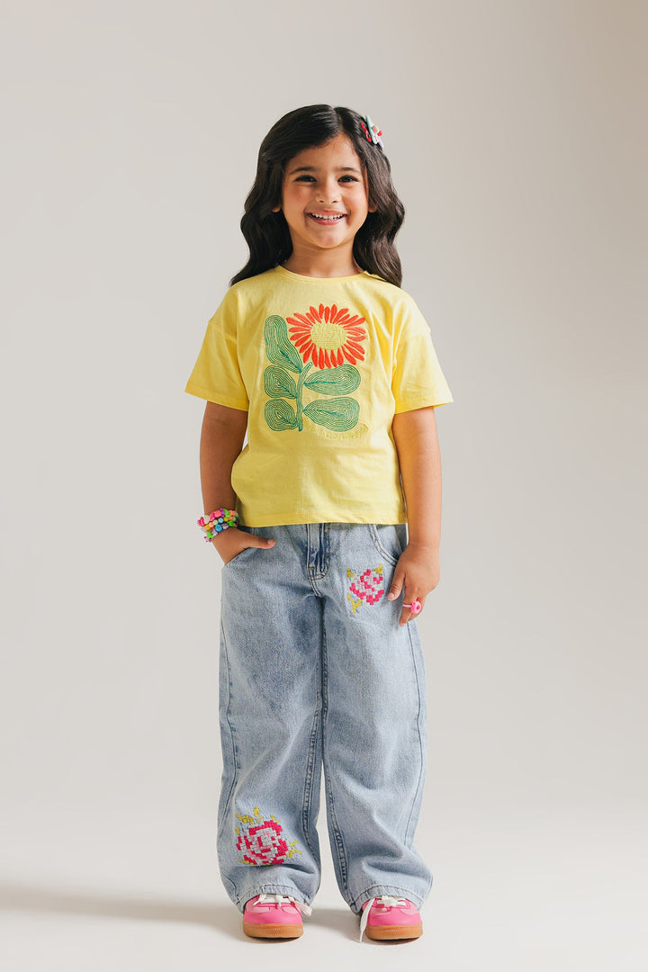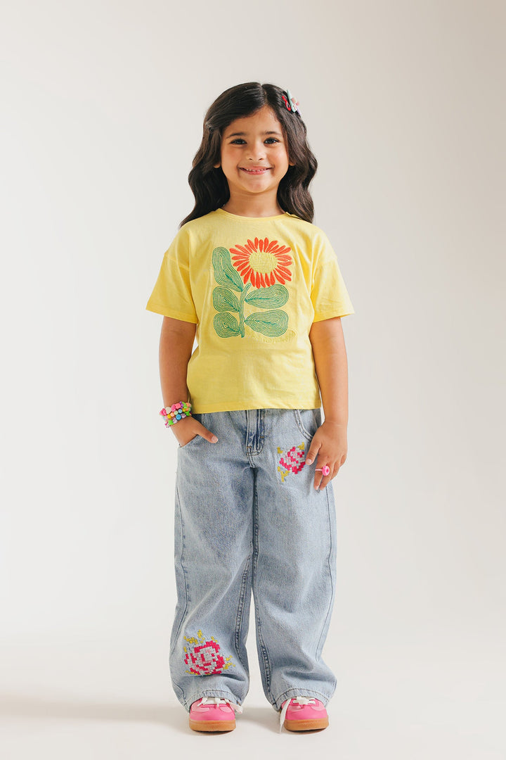 Transform your wardrobe with sophistication by adding this timeless vibrant yellow top, designed for girls and adorned with captivating embroidery in vivid colors. The sleek, functional design seamlessly blend