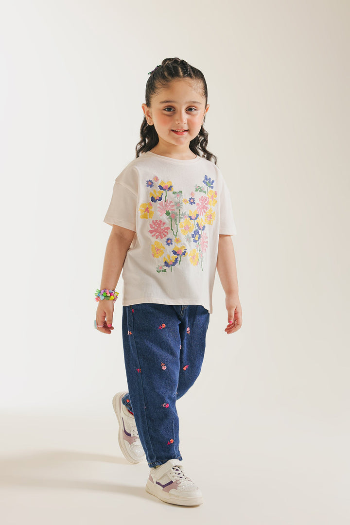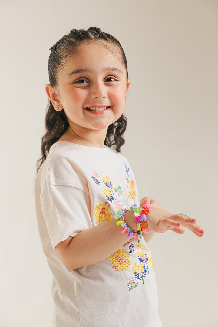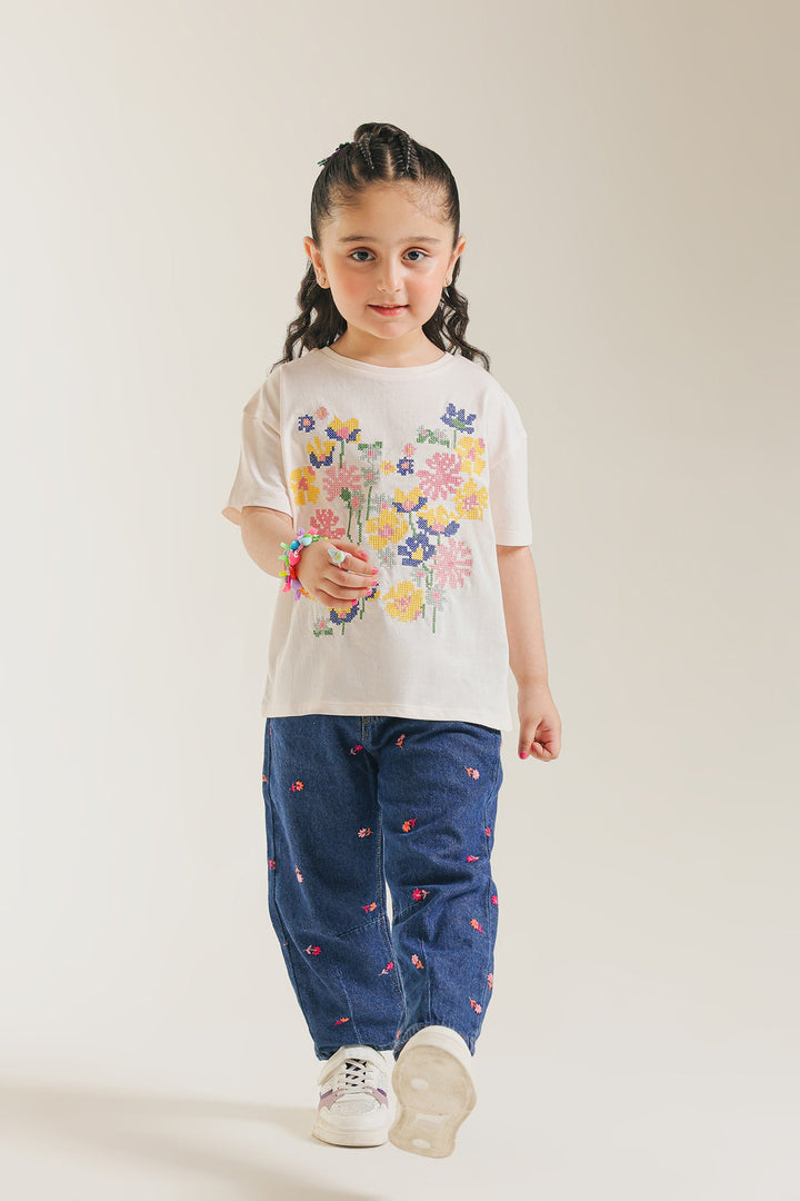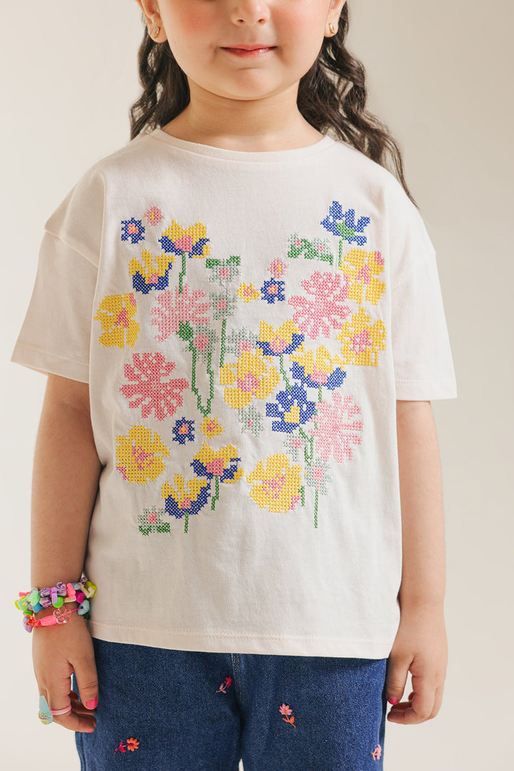Discover artistic charm and all-day comfort in our sweet cross-stitch blooms T-shirt. Crafted from breathable fabric, this classic light pink tee is adorned with a delightful all-over floral pattern, rendered in a captivating cross-stitch style that adds a unique, handcrafted feel. Its relaxed silhouette offers a laid-back look, making it a versatile staple for playdates, school, or simply brightening up any casual outfit with a touch of whimsy.