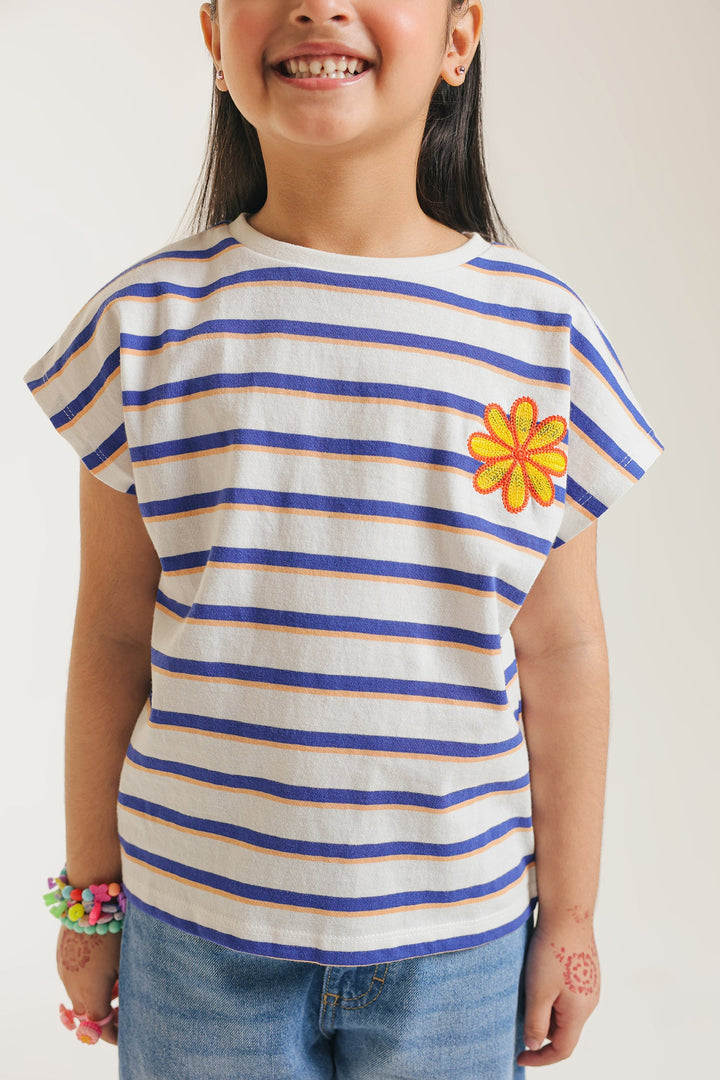 Embrace classic style with a playful twist in our striped graphic tee! This super-soft t-shirt features timeless white and orange horizontal stripes, perfectly accented by a flower embroidery on the left chest. With its comfortable, relaxed fit and easy short sleeves, this tee is ideal for everyday wear, adding a bright and casual vibe to any outfit.