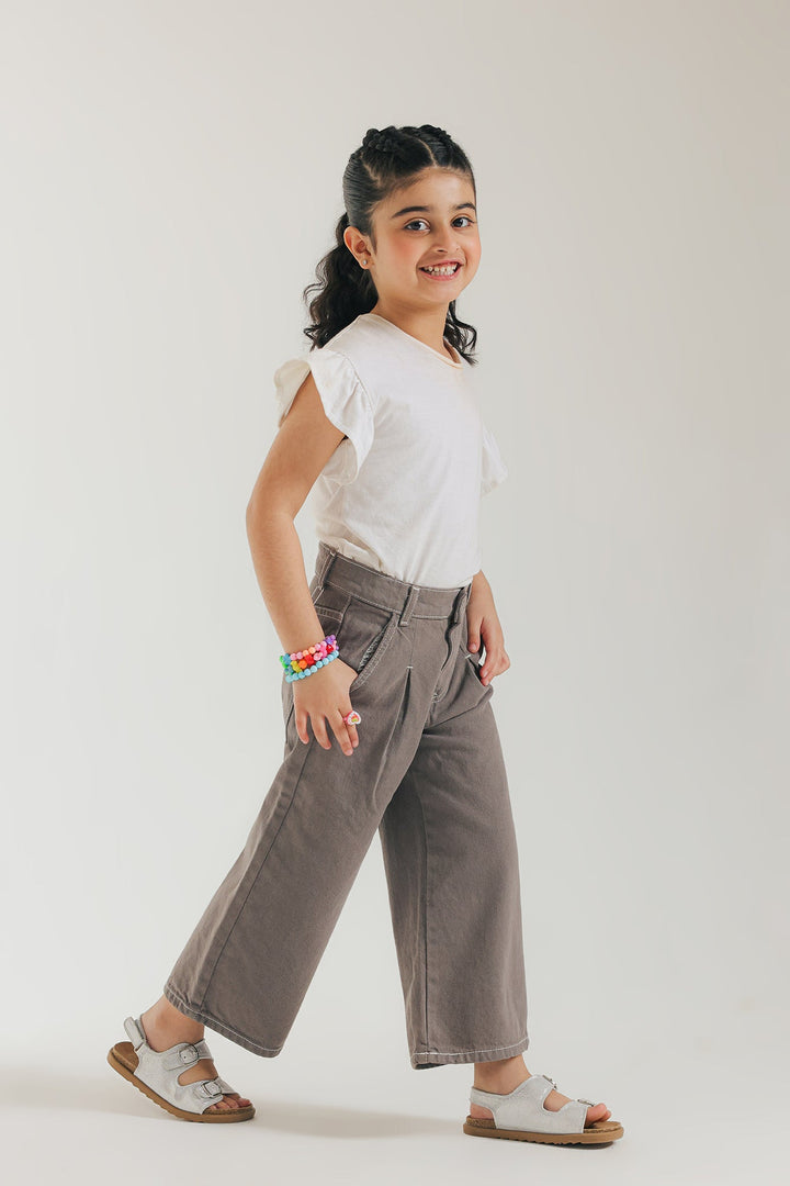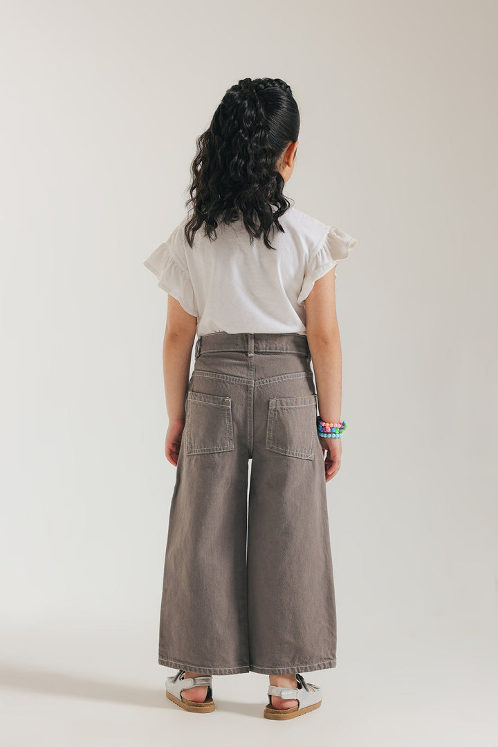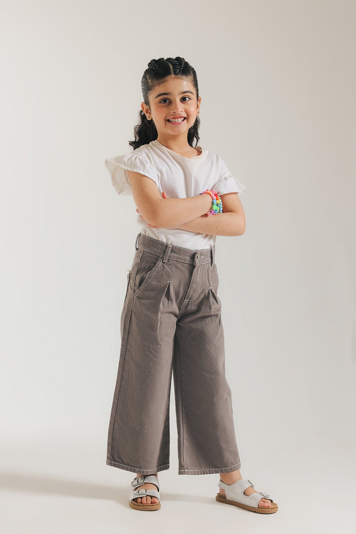 Introducing these style statement pants - a trendy and sophisticated addition to your girl's wardrobe. This anthracite grey jeans features a unique layered design and elegant pleated detailing at the front. Crafted in a flared silhouette, it is perfect for making a statement at any casual gathering.
