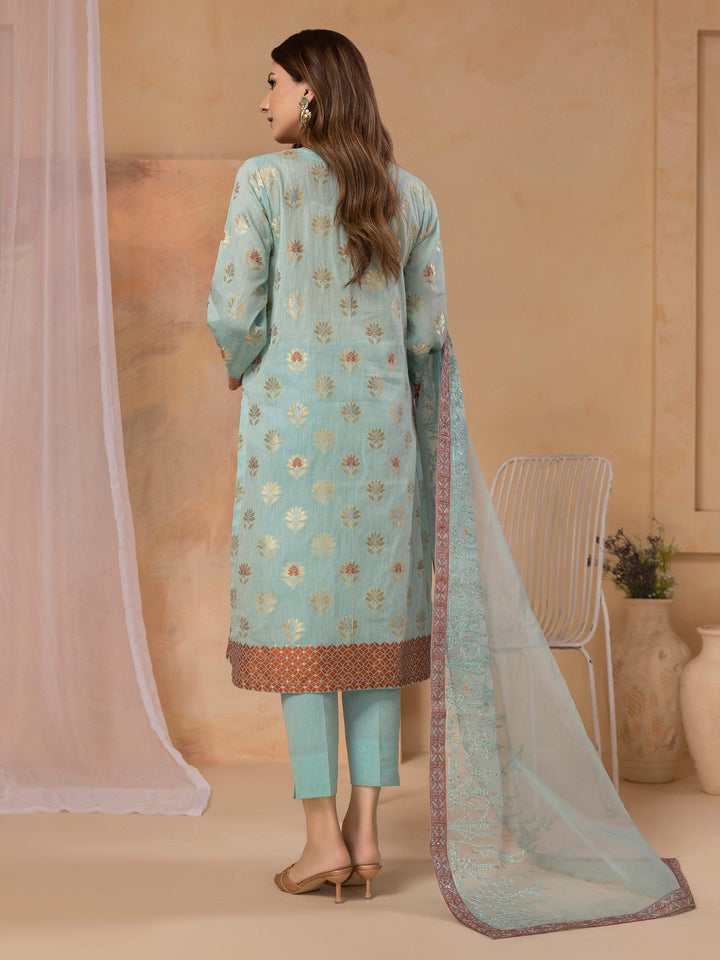 - Unstitched 3 Piece Embroidered Jacquard Suit (Shirt+Dupatta+Trousers)