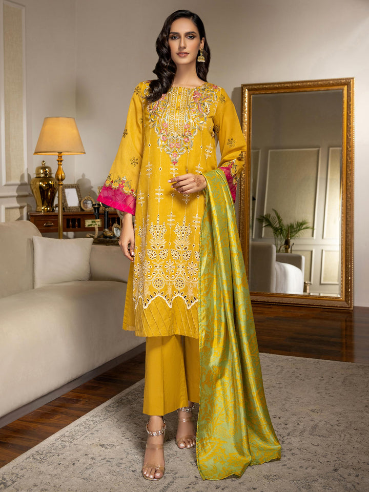 - Unstitched 3 Piece Embroidered Net Suit (Shirt+Dupatta+Trouser)