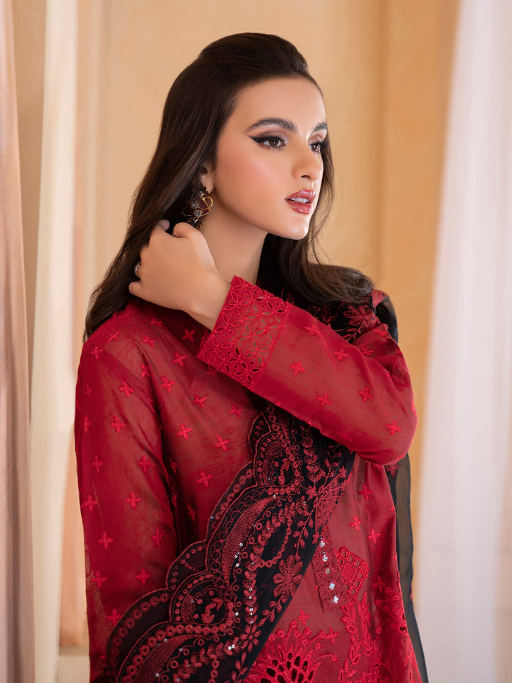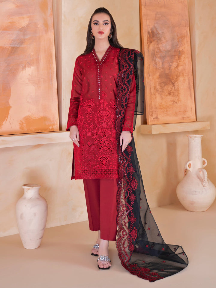 - Unstitched 3 Piece Embroidered Net Suit (Shirt+Dupatta+Trousers)