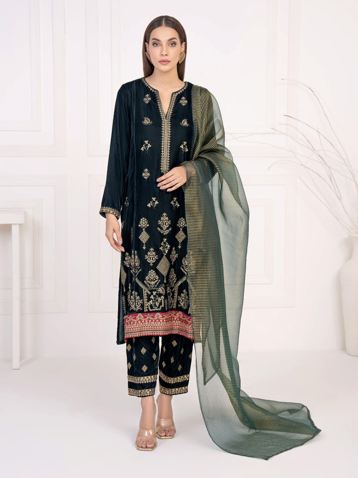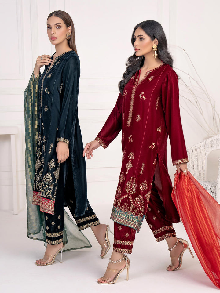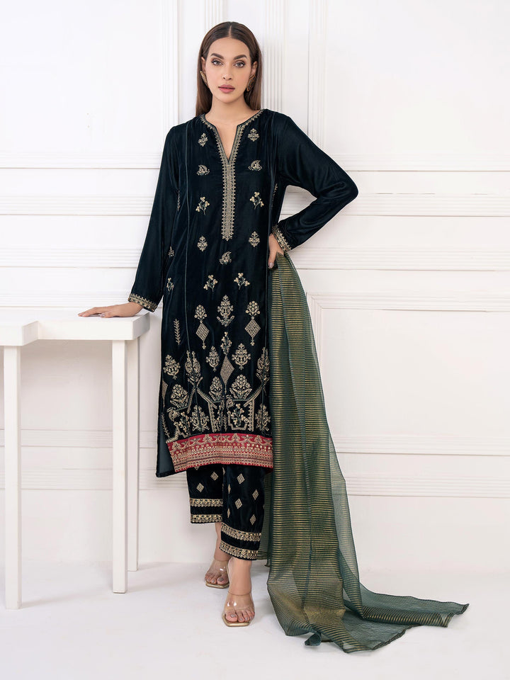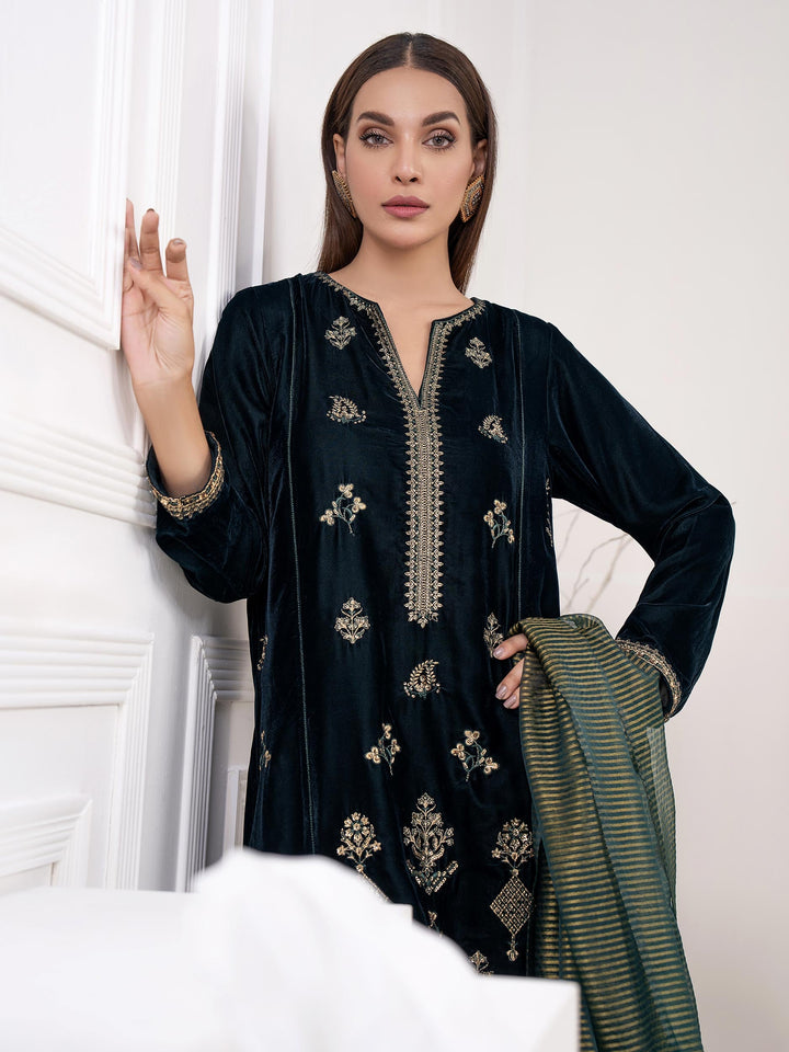 3 Piece Velvet Suit-Embroidered(Unstitched)