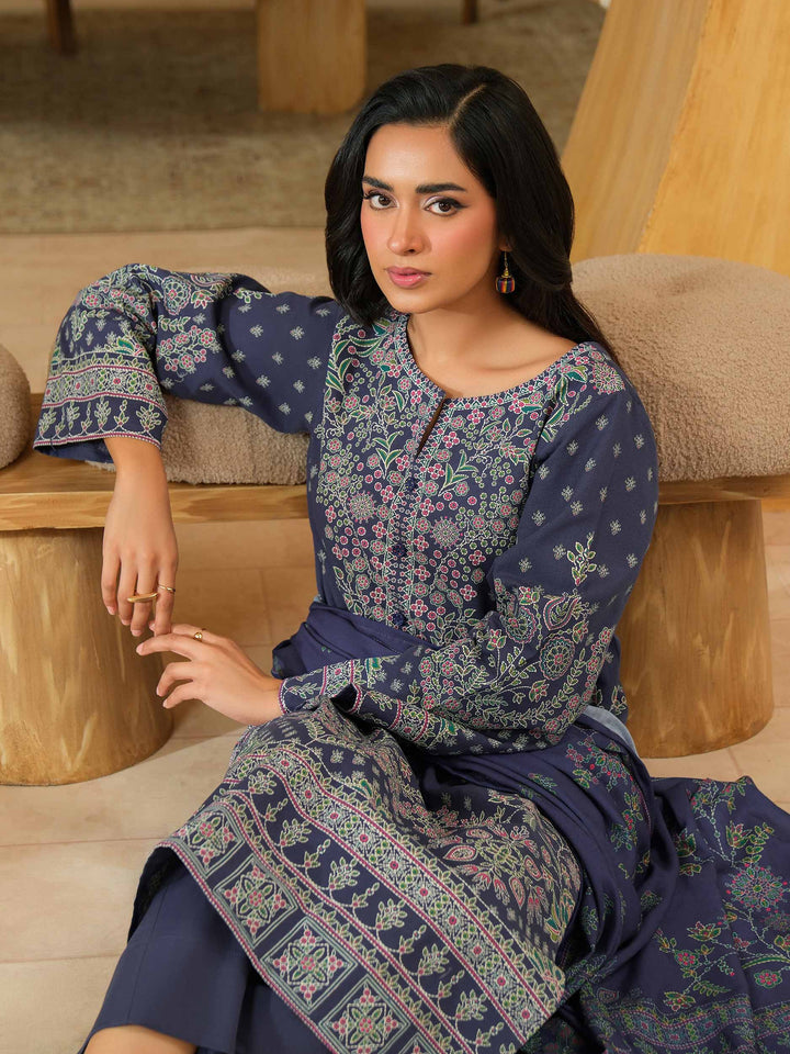 3 Piece Khaddar Suit-Paste Print (Unstitched)