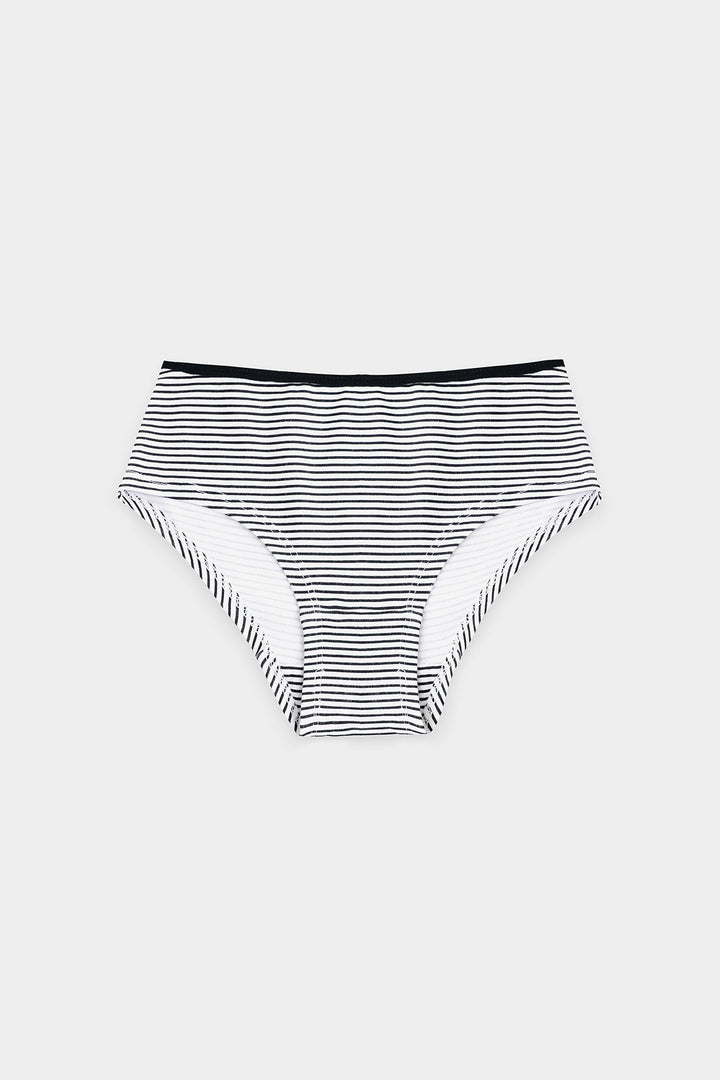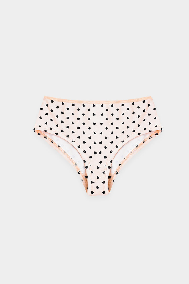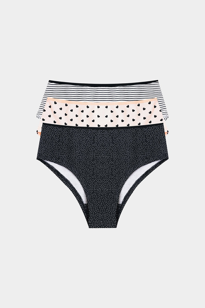 Enhance your everyday comfort with this trio of briefs. Crafted from a soft and comfortable fabric, this pack offers a variety of charming patterns. It includes one pair featuring classic black and white stripes, another with an adorable heart print on a light peach background, and a third in sophisticated black adorned with a subtle white micro-dot pattern. Designed for comfort, these briefs are perfect for daily wear.