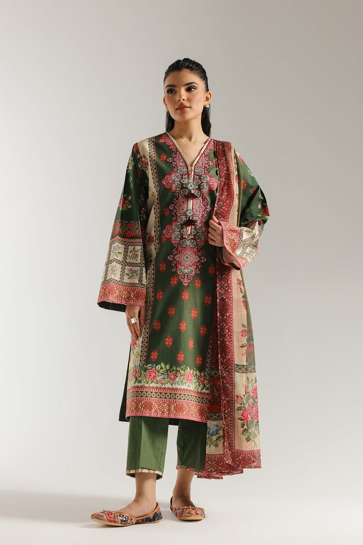 -Embroidered Printed Cotton Slub Shirt 3 Mtr