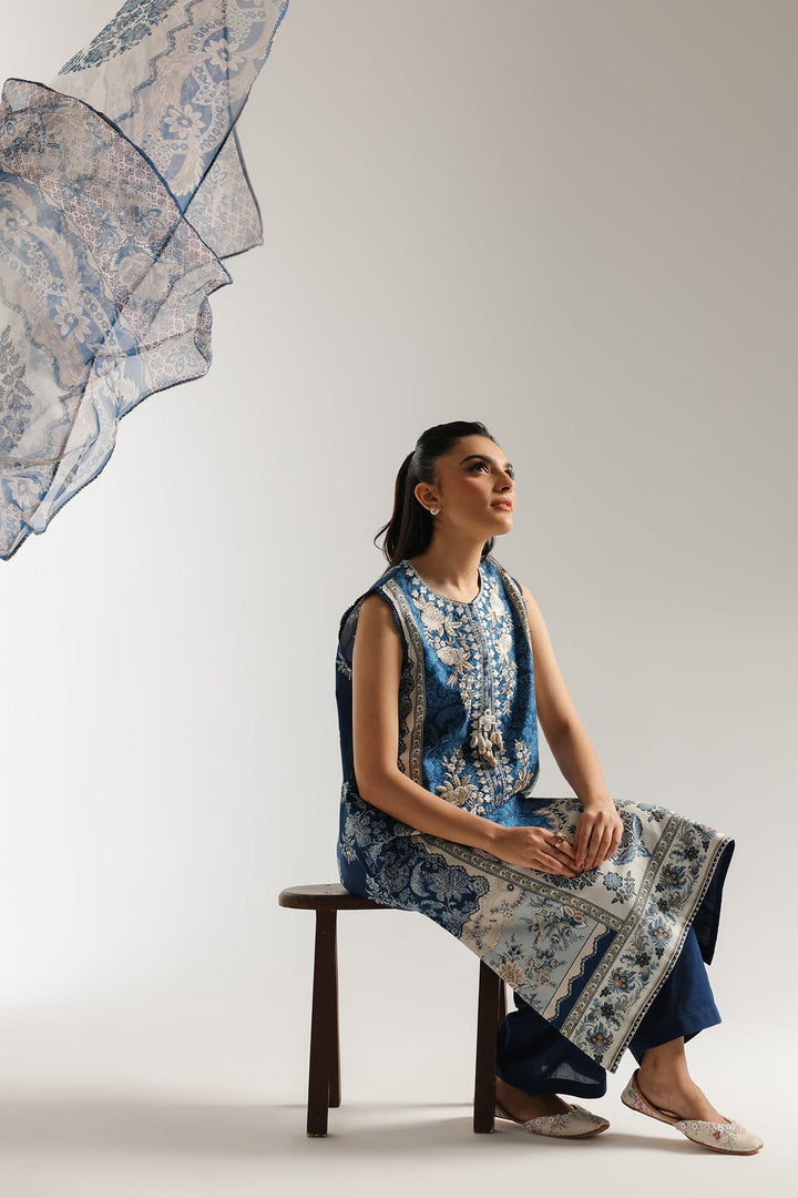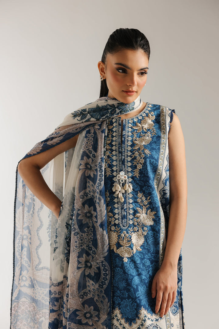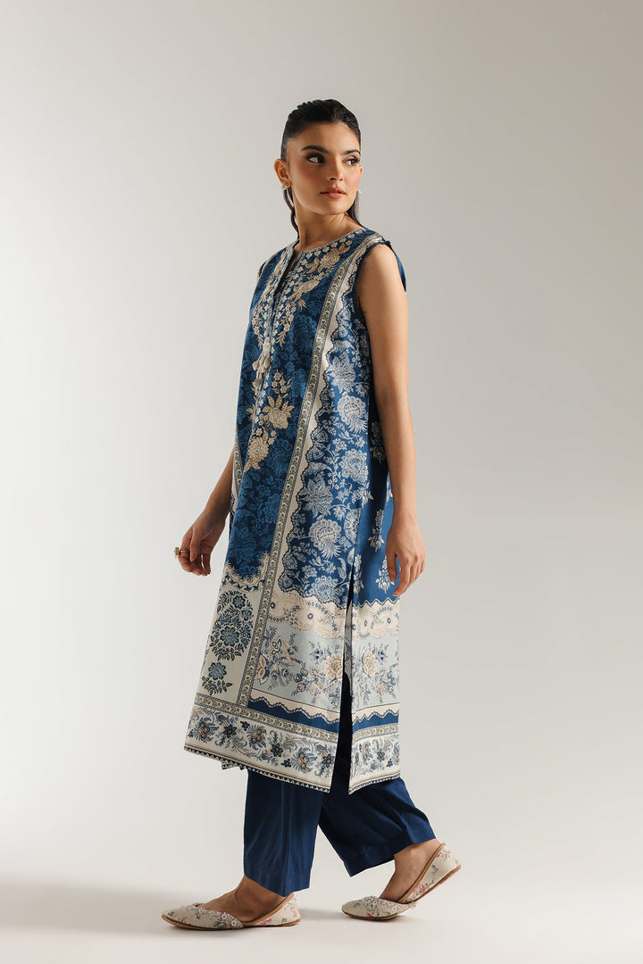-Embroidered Printed Cotton Slub Shirt 3 Mtr