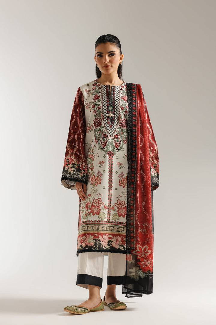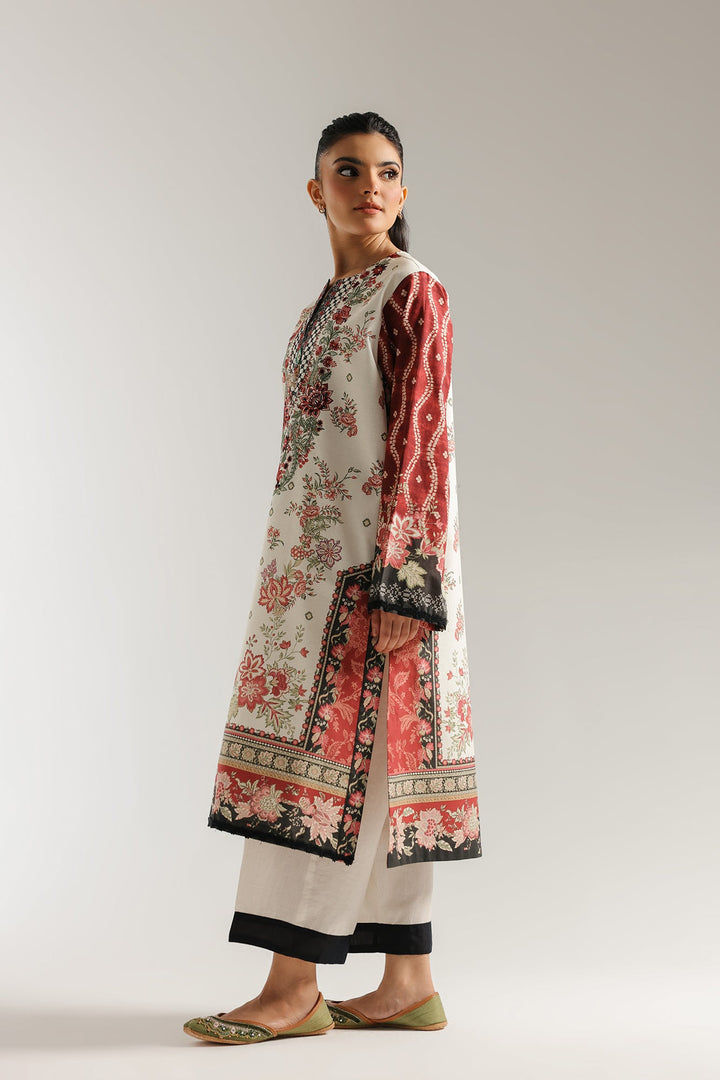 -Embroidered Printed Cotton Slb Shirt 3 Mtr