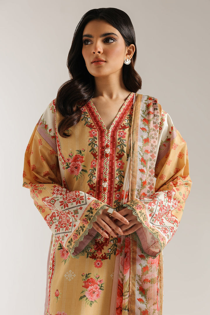 -Embroidered Printed Cotton Slb Shirt 3 Mtr