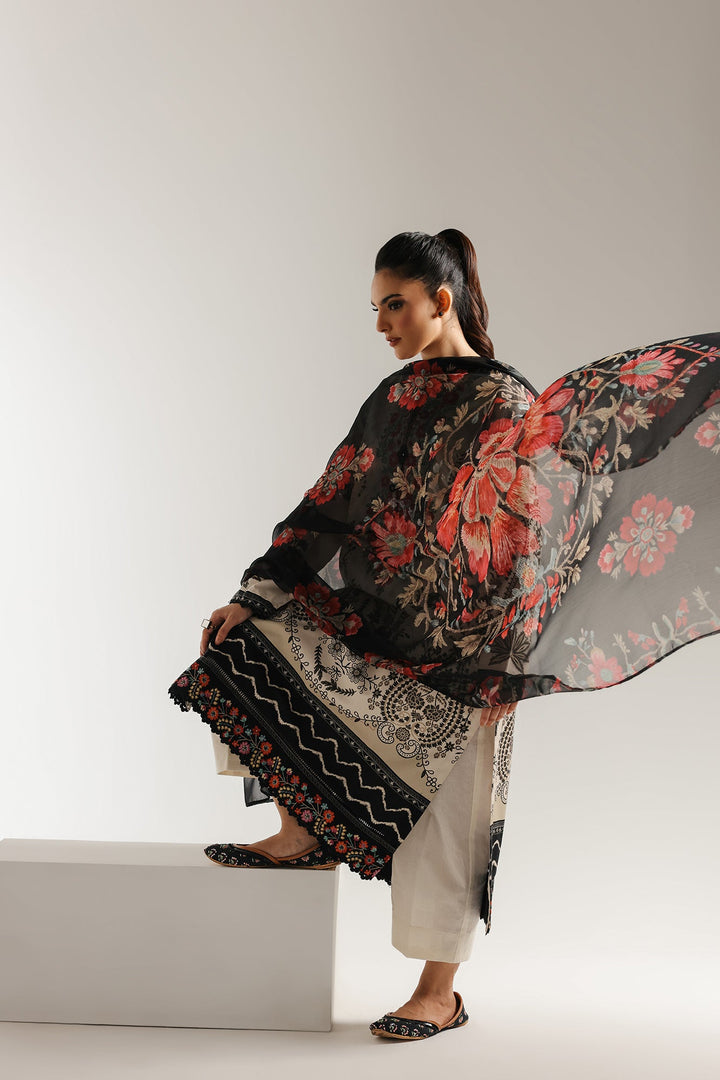 -Embroidered Printed Cotton Slb Shirt 3 Mtr