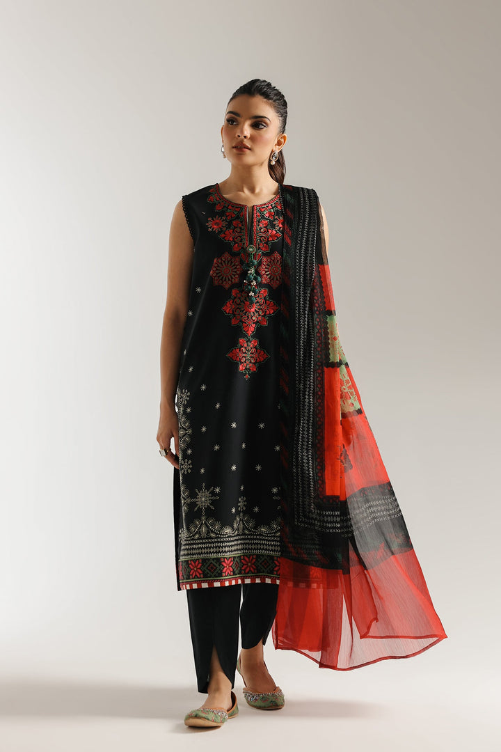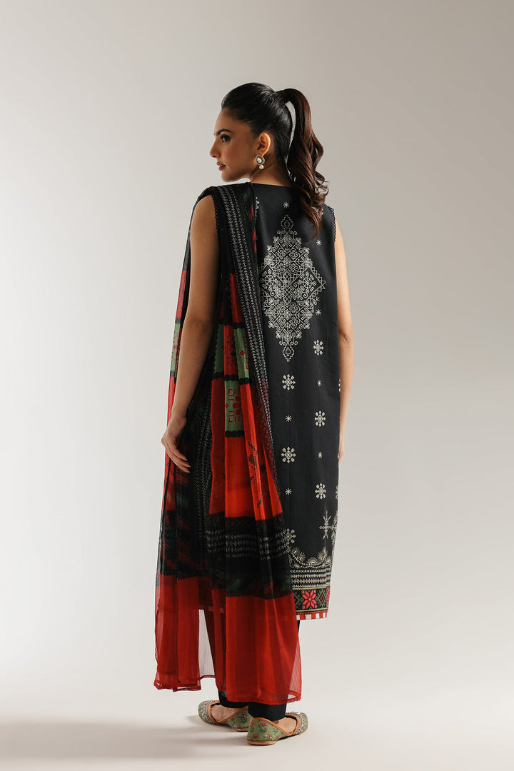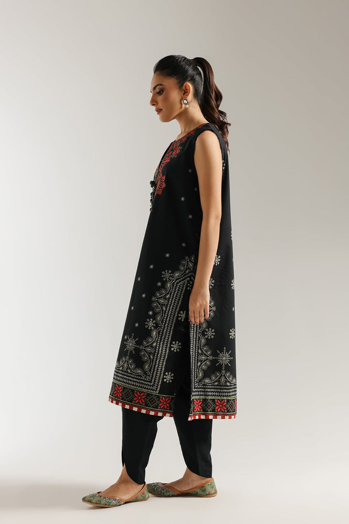 -Embroidered Printed Cotton Slb Shirt 3 Mtr
