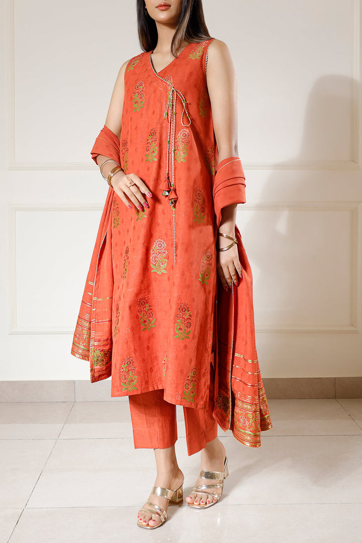 Discover refined texture and timeless style with SAYA’s Unstitched Jacquard Cotton 3-Piece Suit in Rust. Crafted from premium cotton-jacquard fabric with an intricate self-woven pattern, the shirt delivers depth and dimension while remaining elegantly understated. Accompanied by a matched cambric trouser and a coordinated jacquard dupatta, this ensemble offers tailor-ready flexibility and elevated appeal. The rich rust tone adds warmth and character—ideal for festive gatherings, formal evenings, or sophisticated daytime events. With high-quality fabric, versatile design, and custom-fit potential, this set is a wardrobe essential for modern refinement.