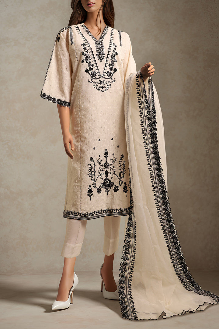 Dyed Embroidered Self Jacquard Shirt Front 0.84 M (Wider Width)