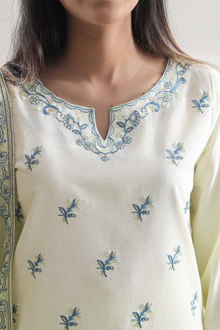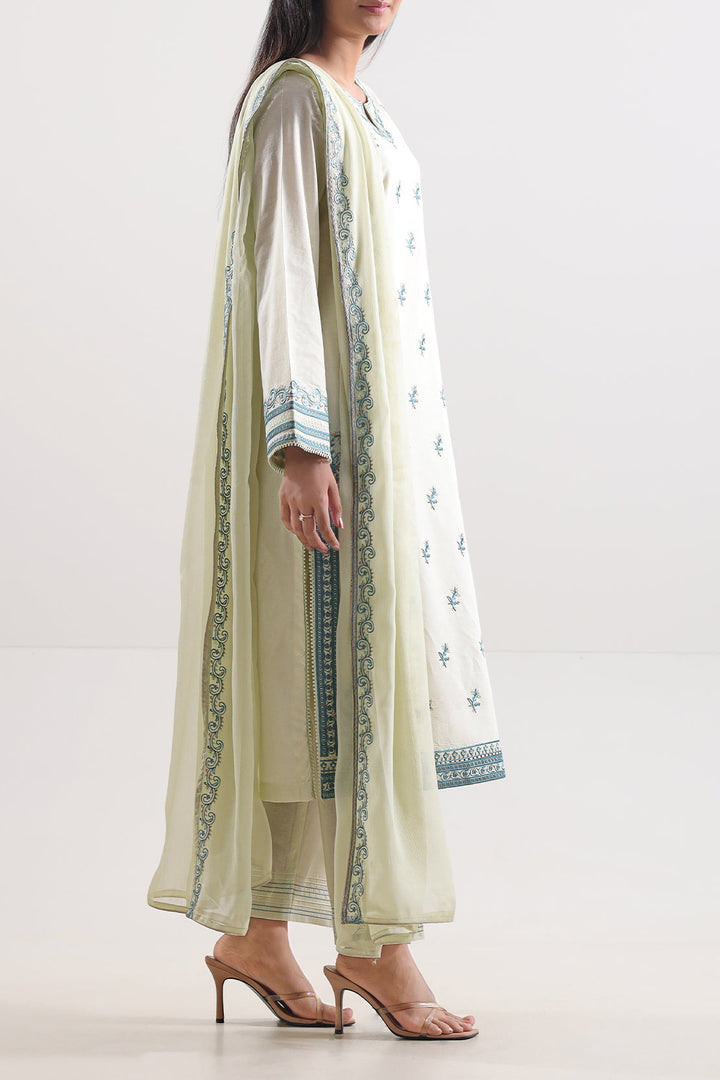 Elevate Your Style With This Unstitched Embroidered Cambric 3-Piece By SAYA, A Perfect Blend Of Elegance And Premium Craftsmanship. The Cambric Shirt Features Intricate Embroidery That Adds Timeless Grace, While The Dyed Cambric Trouser Offers Comfort And Durability. A Flowing Chiffon Dupatta Completes The Look With A Touch Of Luxury. Ideal For Festive Occasions, Semi-Formal Gatherings, Or Daytime Events, This Ensemble Allows You To Create A Tailored Look That Reflects Modern Sophistication.