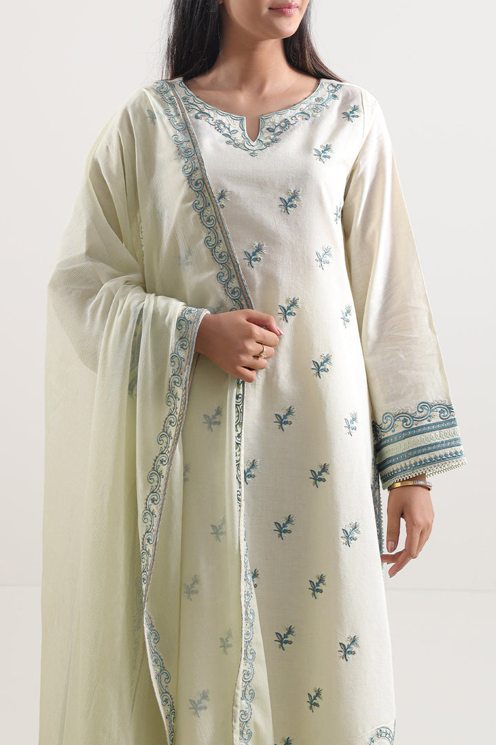 Unstitched Embroidered Cambric 3 Piece With Chiffon Dupatta