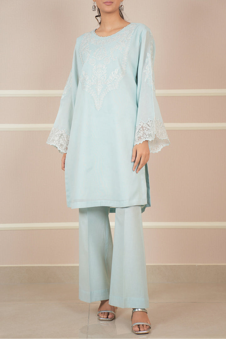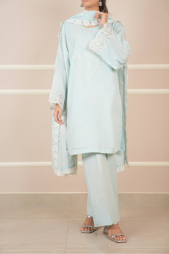 Elevate Your Ethnic Wardrobe With This Unstitched Embroidered Cotton Net 2-Piece Ensemble By SAYA, Featuring A Delicately Detailed Shirt Paired With A Matching Trouser. The Lightweight Cotton Net Fabric Offers An Airy Feel, Perfect For Transitional Weather Or Semi-Formal Daywear. Beautifully Embroidered Motifs Add An Elegant Touch To The Soft Base, Enhancing Its Refined Appeal. Ideal For Festive Brunches, Intimate Gatherings, Or Sophisticated Day Events, This Outfit Allows You To Style It As You Desire—Whether With A Sleek Cut Or A Flowing Silhouette.