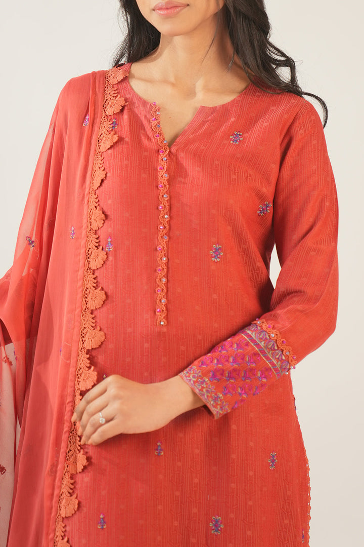 Experience Timeless Elegance With This Unstitched Embroidered Jacquard Cotton 2-Piece Shirt And Trouser Set By SAYA. Featuring A Luxurious Jacquard Cotton Fabric Enhanced With Subtle Yet Sophisticated Embroidery, This Ensemble Reflects Refined Taste. The Rich Texture Adds Depth To The Shirt While The Matching Trouser Completes The Look With Grace. Perfect For Semi-Formal Gatherings, Family Events, Or Daytime Festivities Where Comfort Meets Cultured Style.