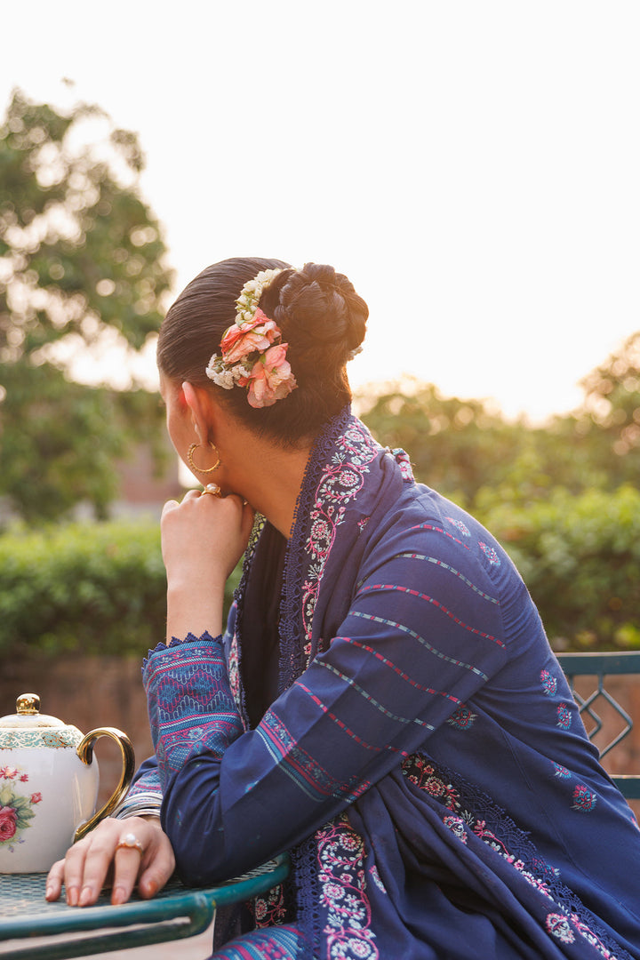 Saya's Unstitched Embroidered Jacquard Cotton 3-Piece Suit in Navy Blue offers a harmonious blend of sophistication and comfort, making it an ideal choice for festive and semi-formal occasions. Crafted from premium cotton jacquard fabric, this ensemble allows for personalized tailoring to suit your unique style.