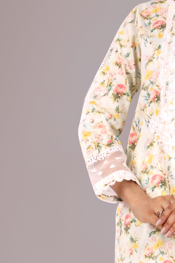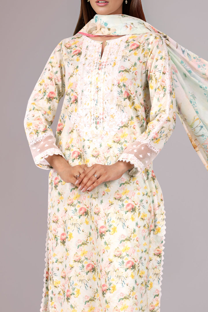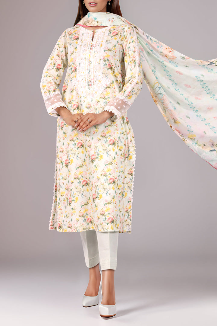 Introducing Saya's Unstitched Embroidered Self Jacquard 2-Piece ensemble, a perfect blend of elegance and comfort for your wardrobe. This set features a premium off-white self-jacquard shirt adorned with intricate embroidery, complemented by a matching printed chiffon dupatta. The unstitched design allows for personalized tailoring, making it suitable for both casual and semi-formal occasions.