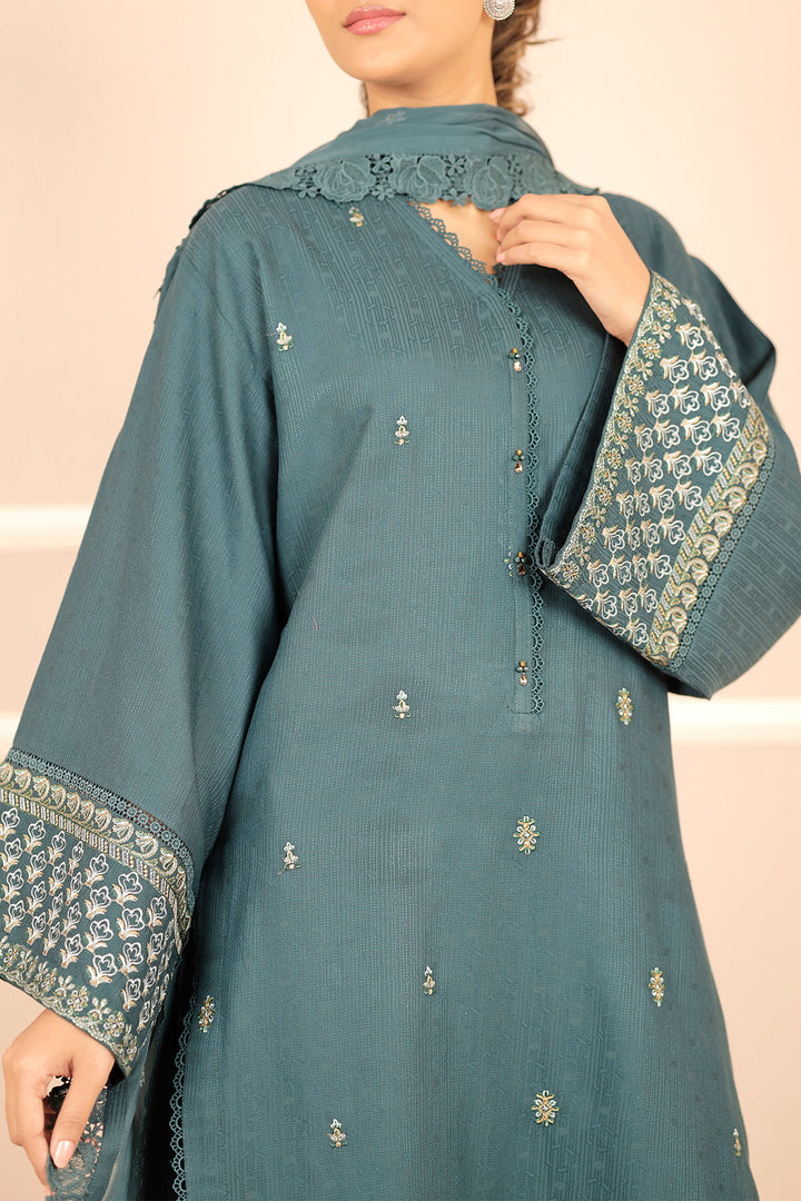 Unstitched Embroidered Self Jacquard 3 Piece with Chiffon Dupatta