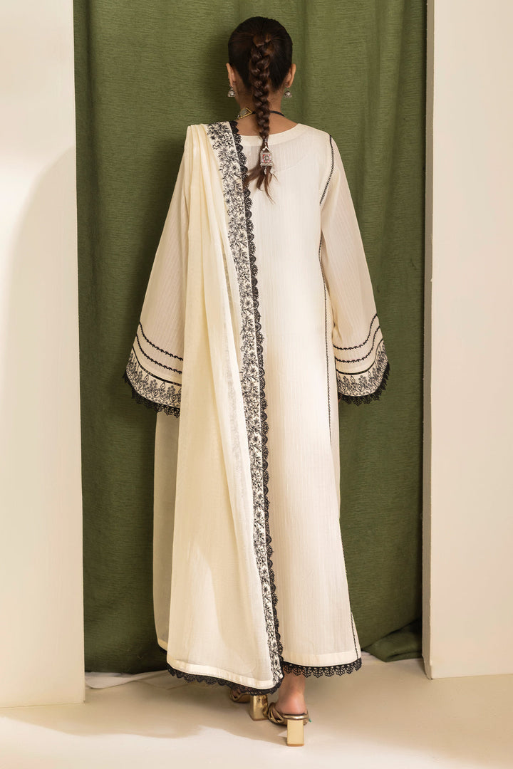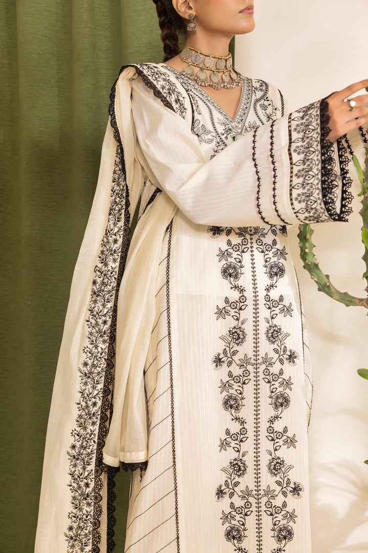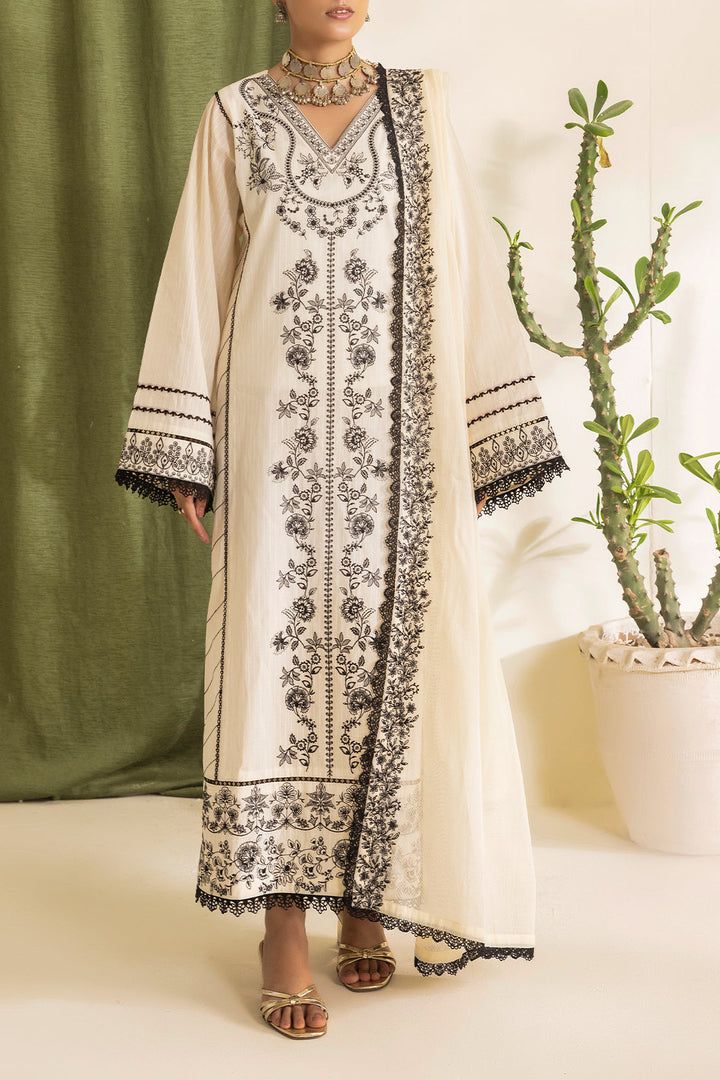 Unstitched Embroidered Self Jacquard 3 Piece With Cotton Net Dupatta